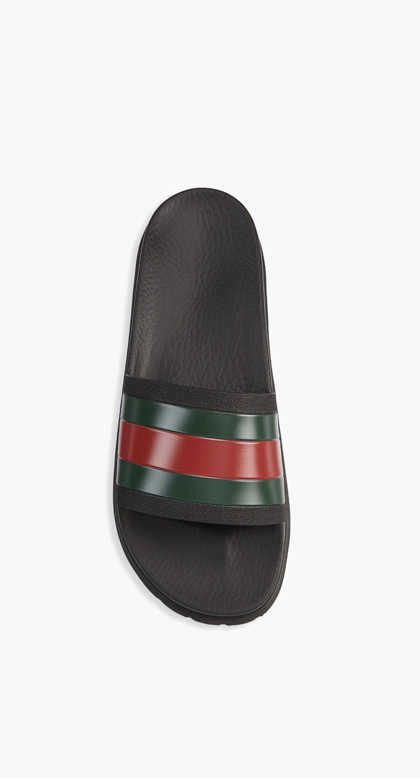 Gucci Men's Slide Sandals Black Red Green Striped EU Size 37