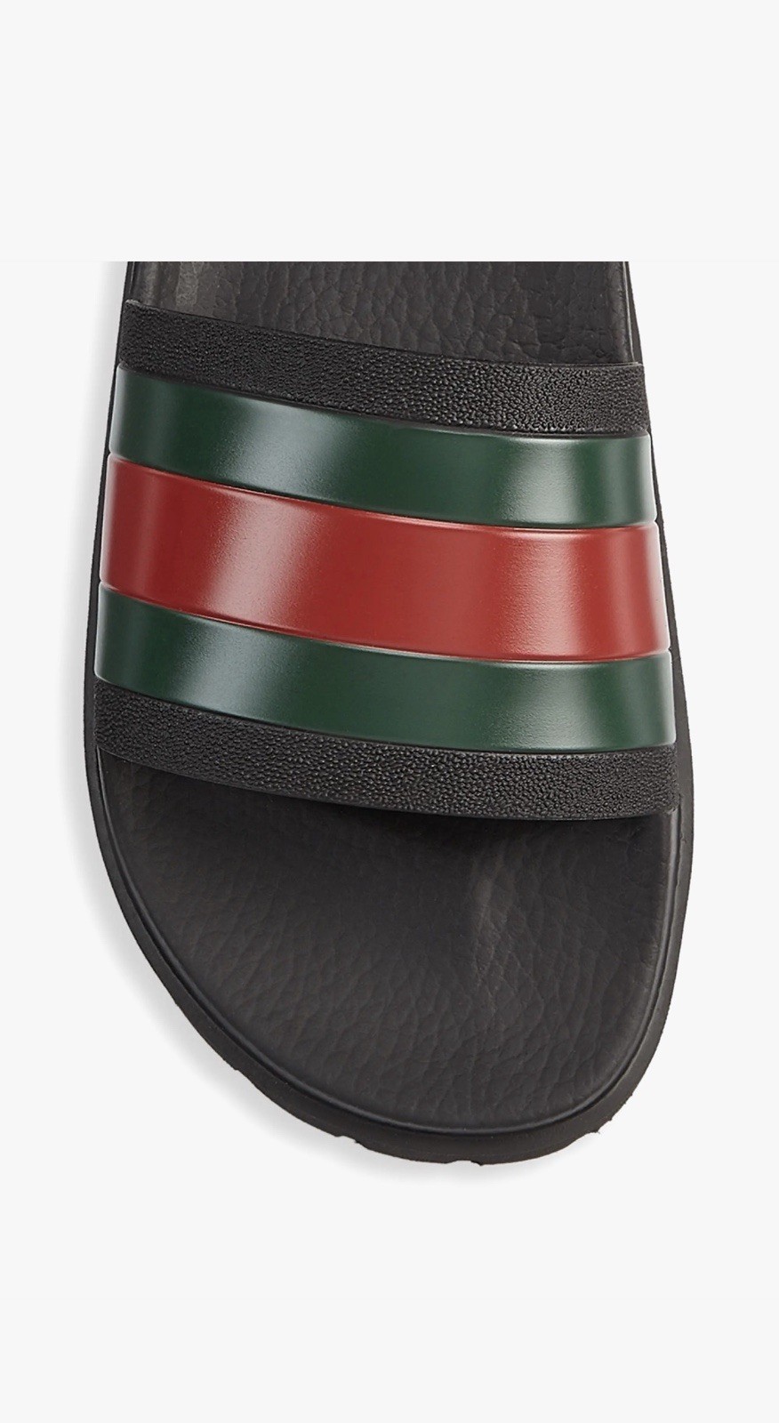 как выглядит Gucci Mens Slide Sandals Black Red Green Striped EU Size 37 фото