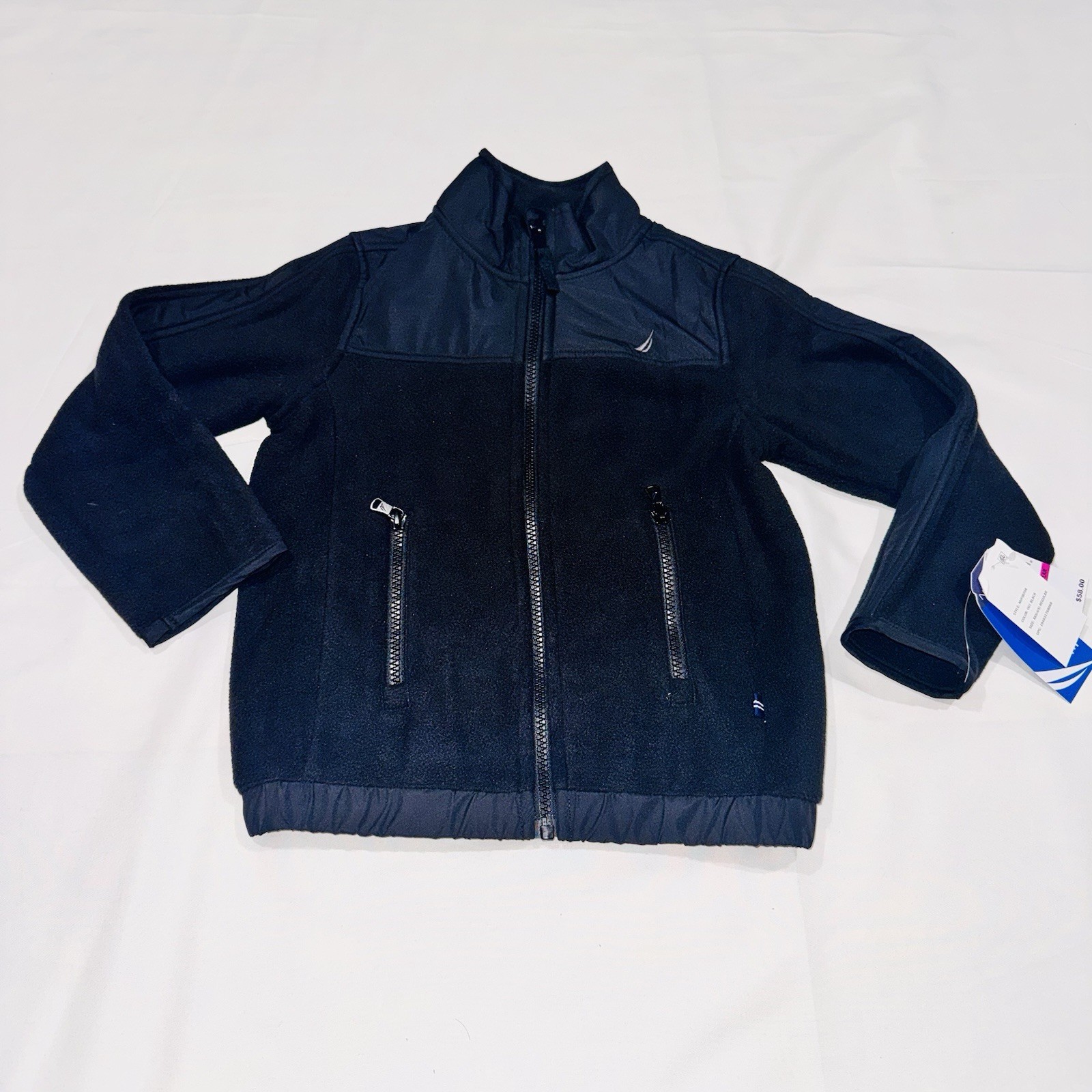Nautica Boys' Black Polar Zip-Up Jacket 4/5 Stand Collar Soft Interior NWT