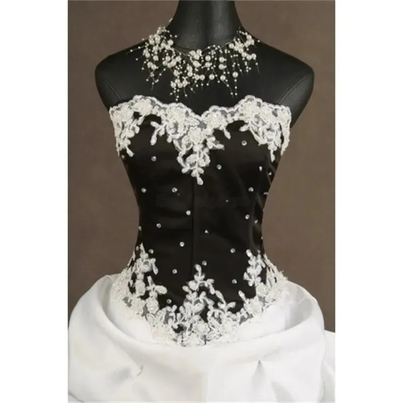 Black And White Gothic Wedding Dresses Ruched Satin And Lace Vintage Victorian