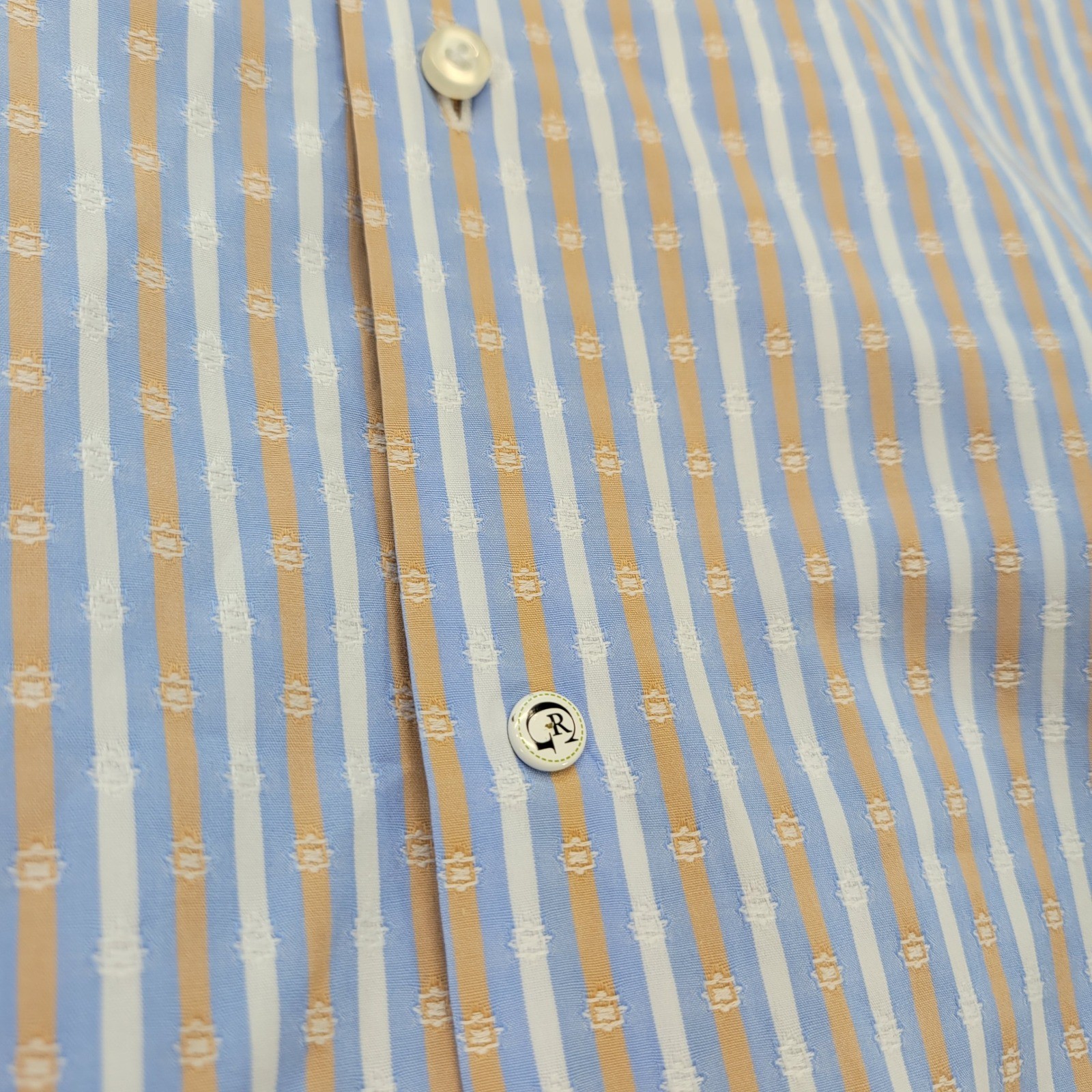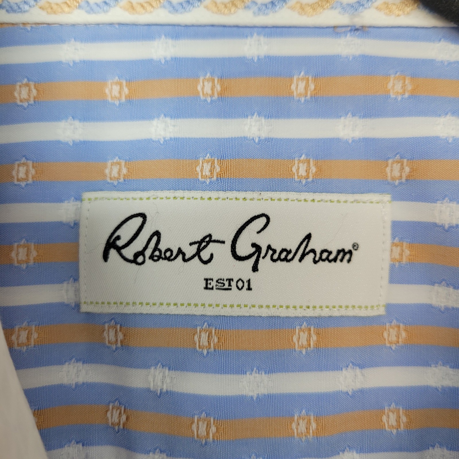 Robert Graham Button Down Shirt Mens 41 16 Blue Striped Jacquard Long Sleeve