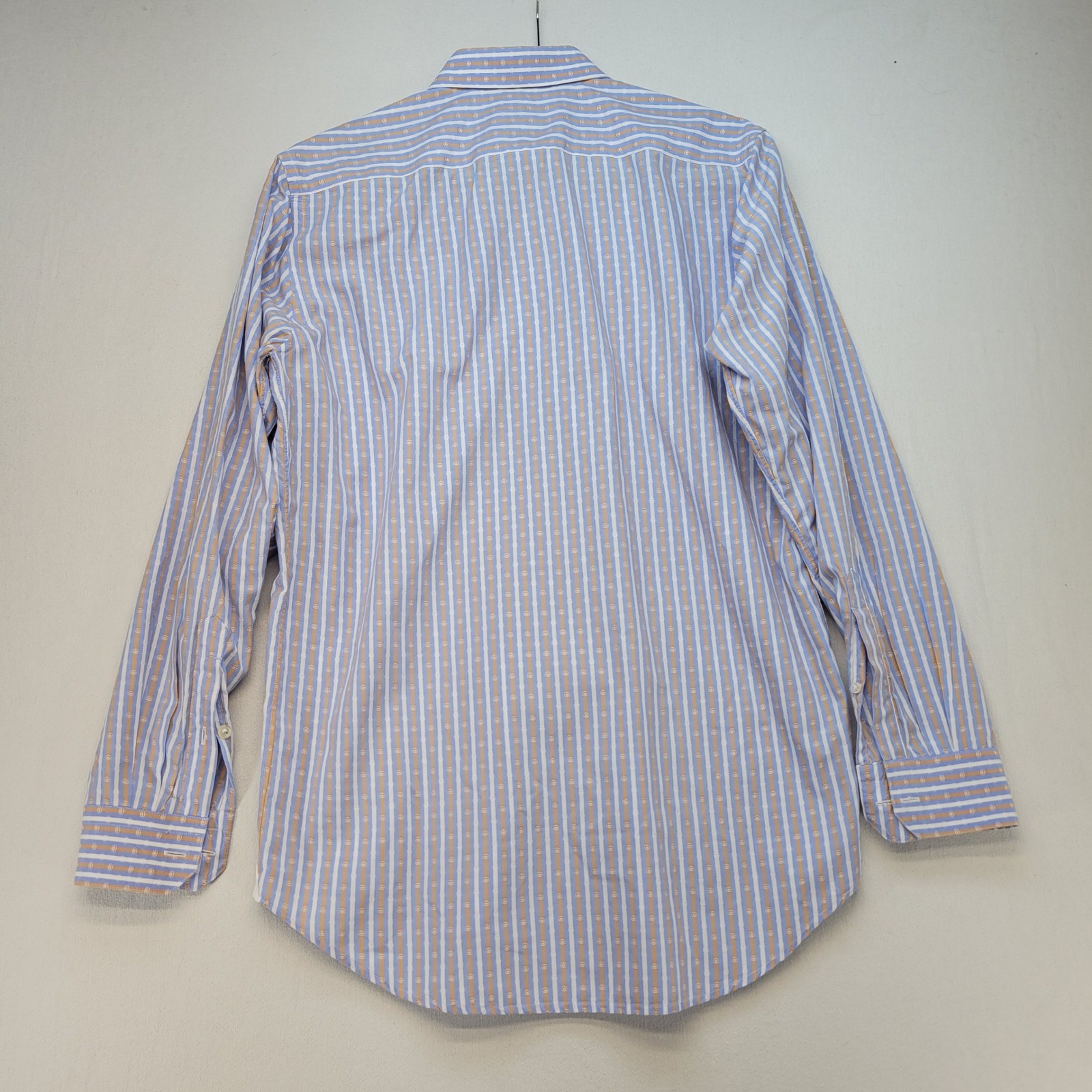 как выглядит Robert Graham Button Down Shirt Mens 41 16 Blue Striped Jacquard Long Sleeve фото