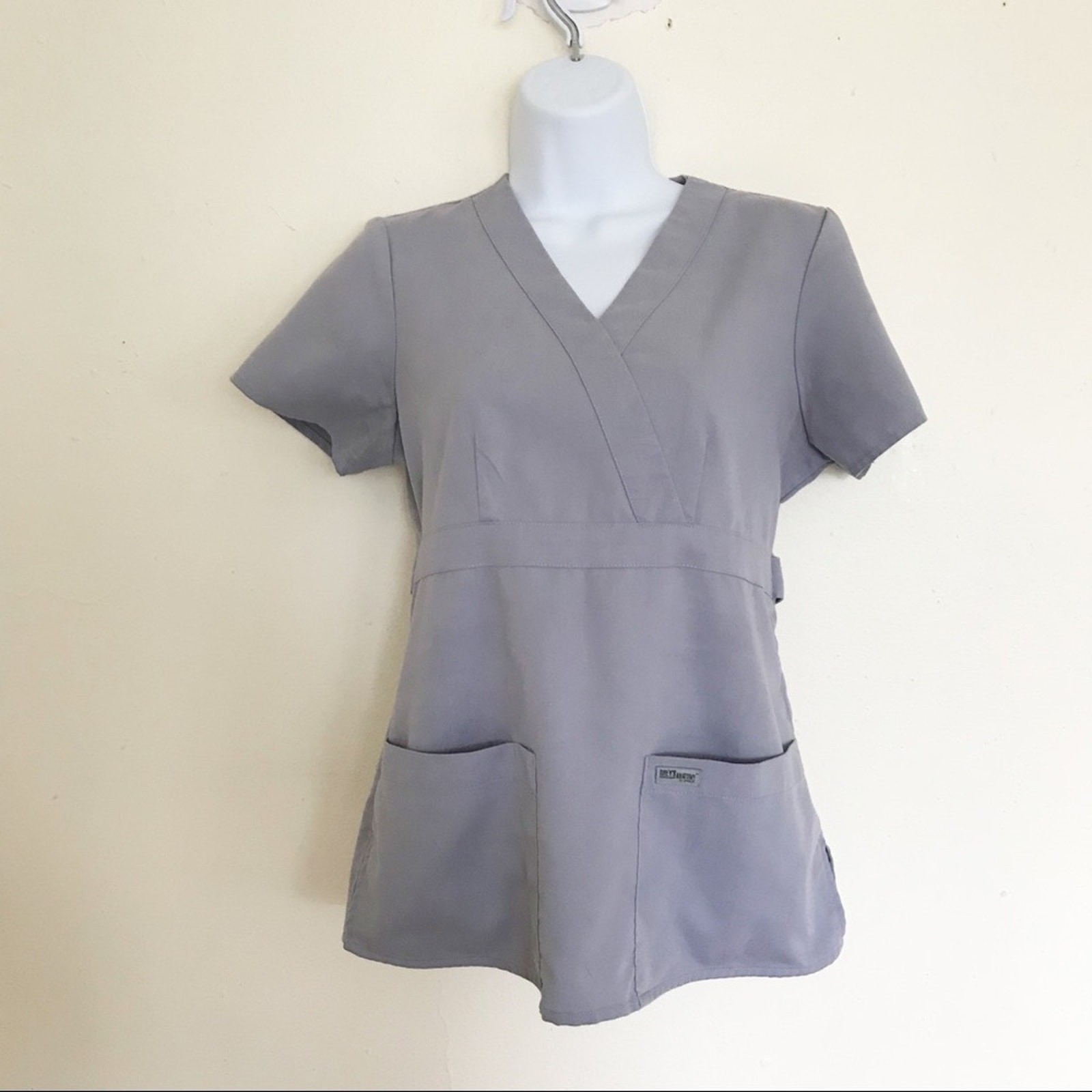 как выглядит GREY S ANATOMY Gray Mock Wrap Scrub Top, XS фото