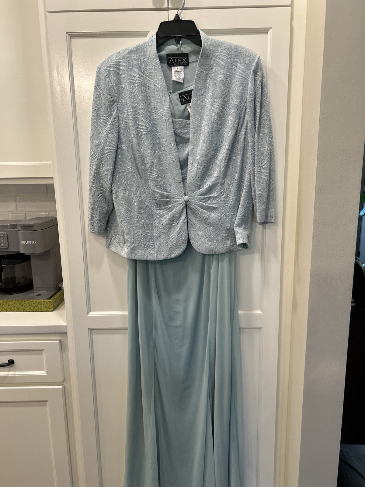 Alex evenings Wedding Occasions 2PC Jacket dress evening Seafoam Green MOB Sz 16