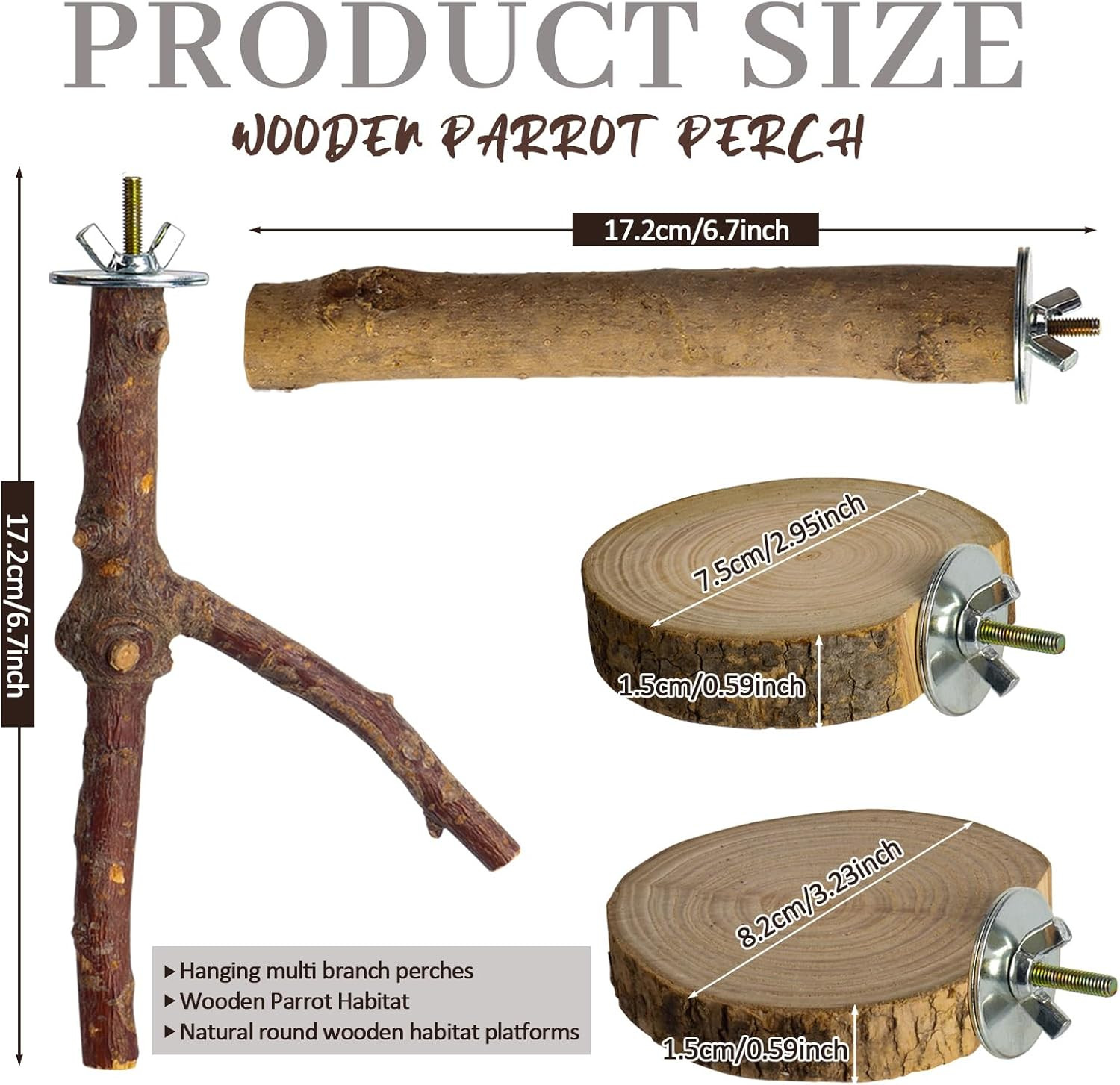 8 Pack 9 Inch Natural Wood Bird Perches Parrot Perch Stand Parakeet Toys Bird Ca