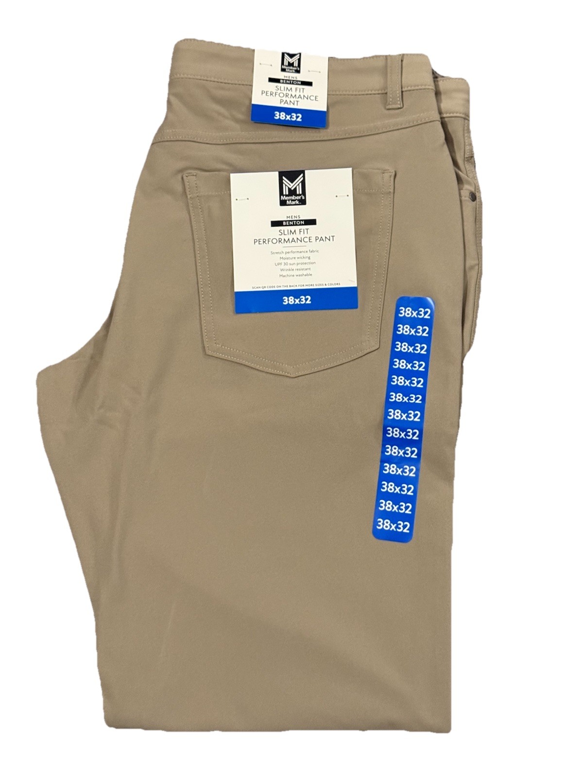 Member's Mark Men s Benton Slim Fit Performance Stretch Pants Khaki 38X32 NWT
