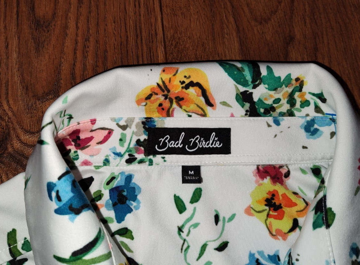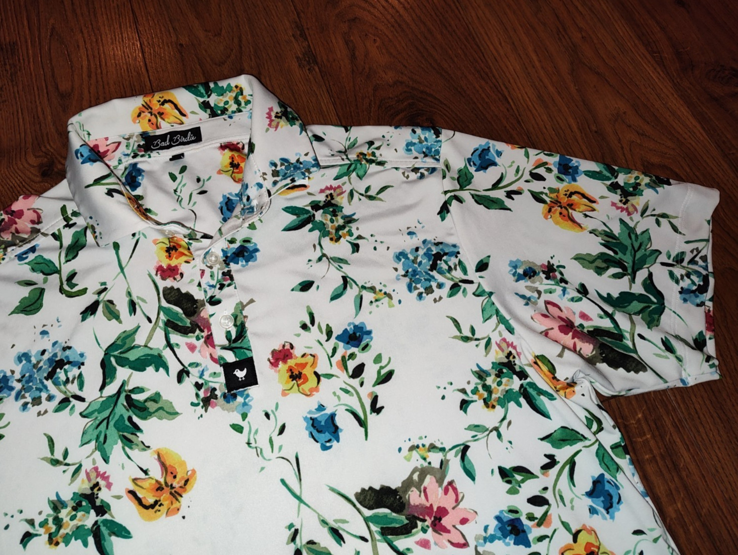 Bad Birdie Men's AOP Floral Print Short Sleeve Performance Golf Polo Shirt M