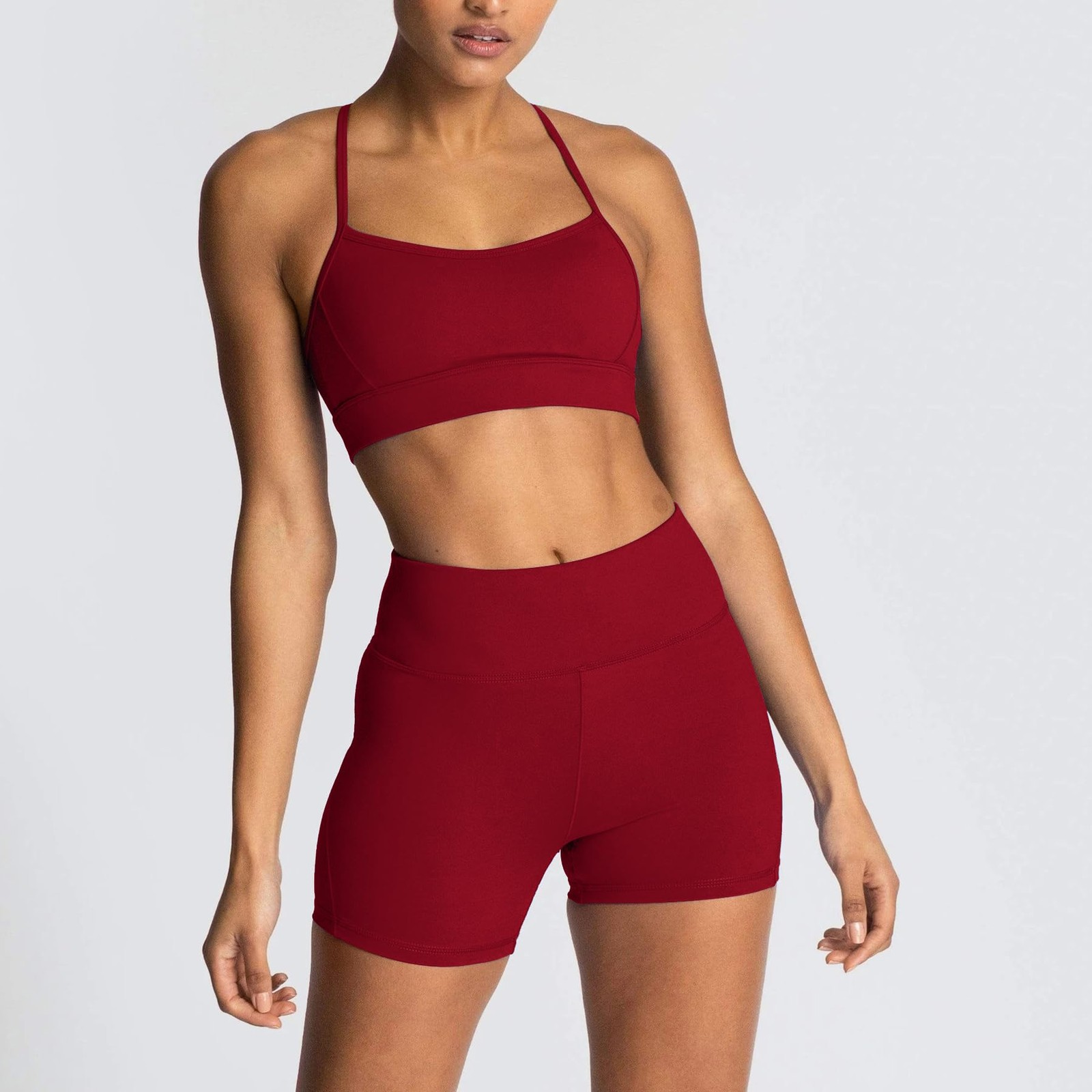 Workout Sets for Women Strappy Sports Bra High Waist Biker Shorts 2 Piece Gym...