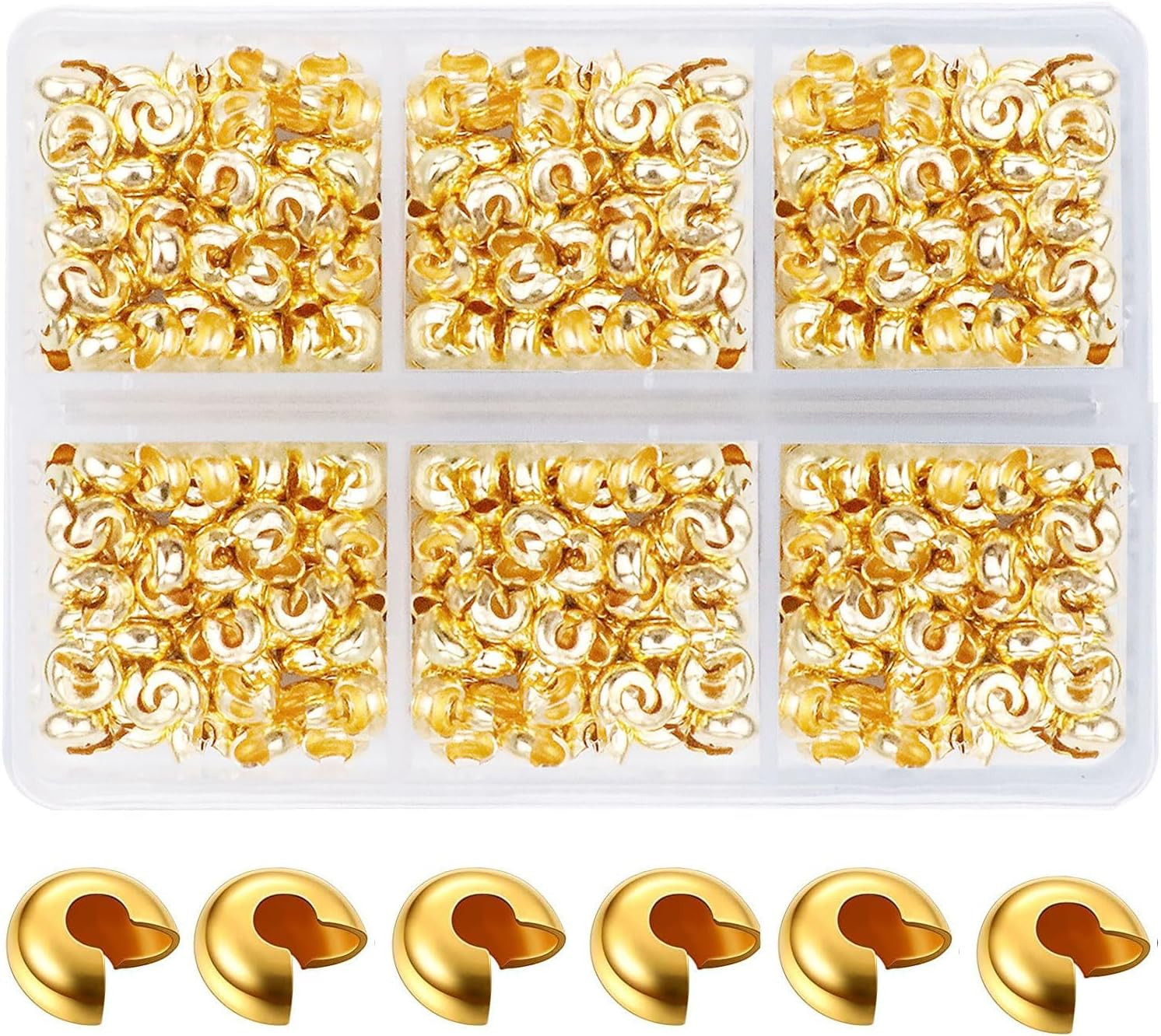 как выглядит 600 Pieces Crimp Bead Covers 4Mm Open Half round Crimp Bead Knot Cover Silver Sm фото
