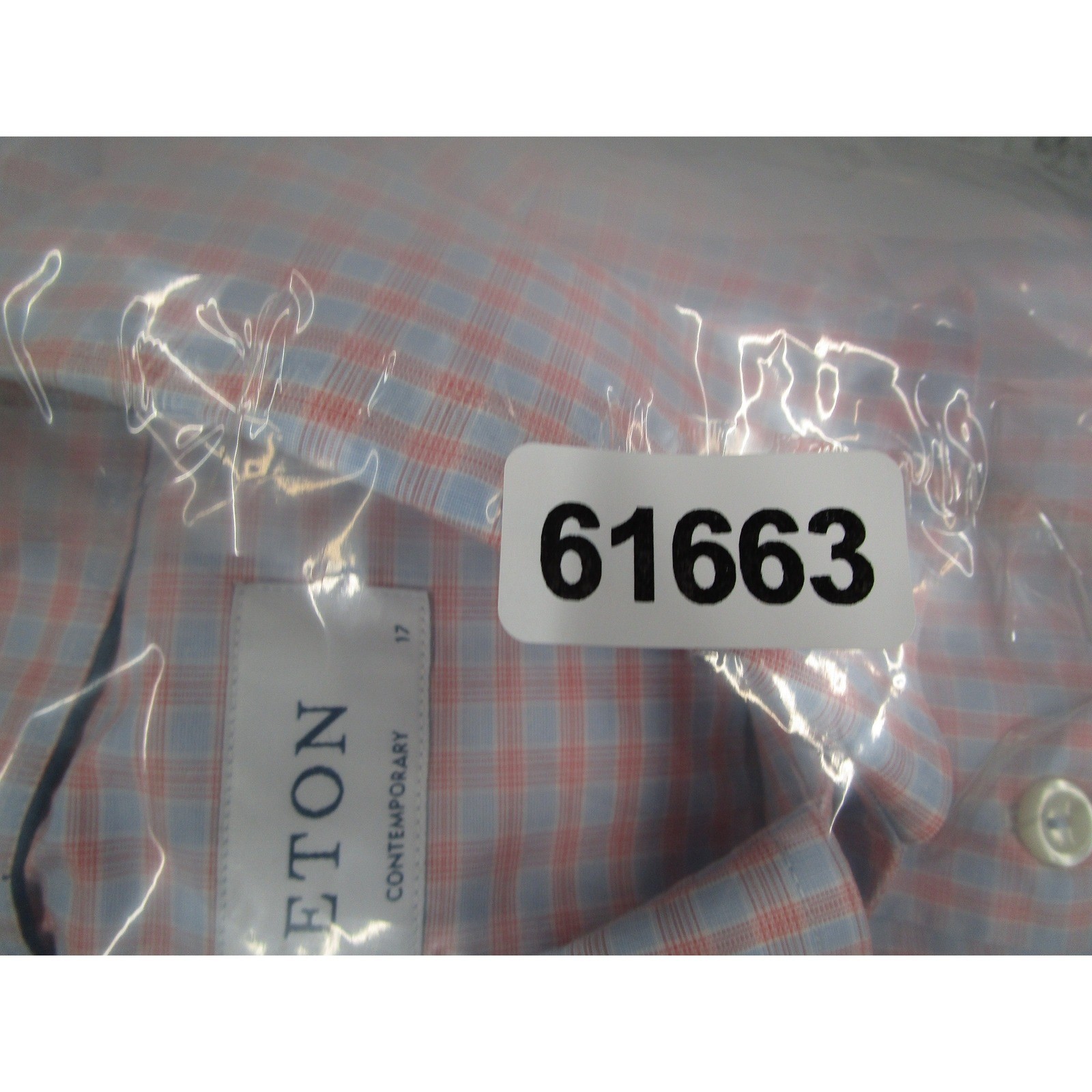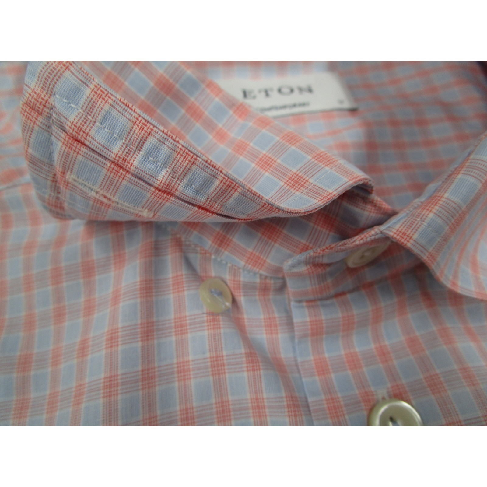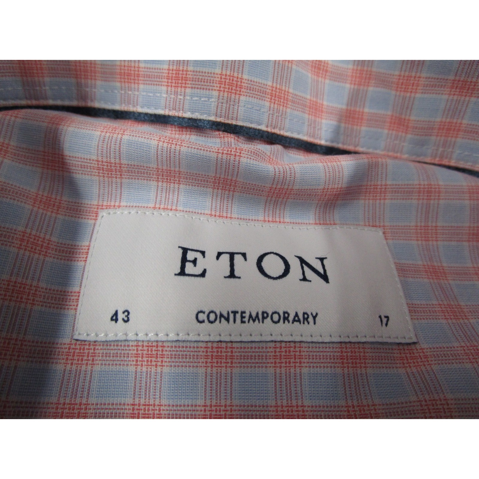 как выглядит Eton Contemporary Fit Dress Shirt Mens 17 43 Blue Orange Check Club Collar L/S фото