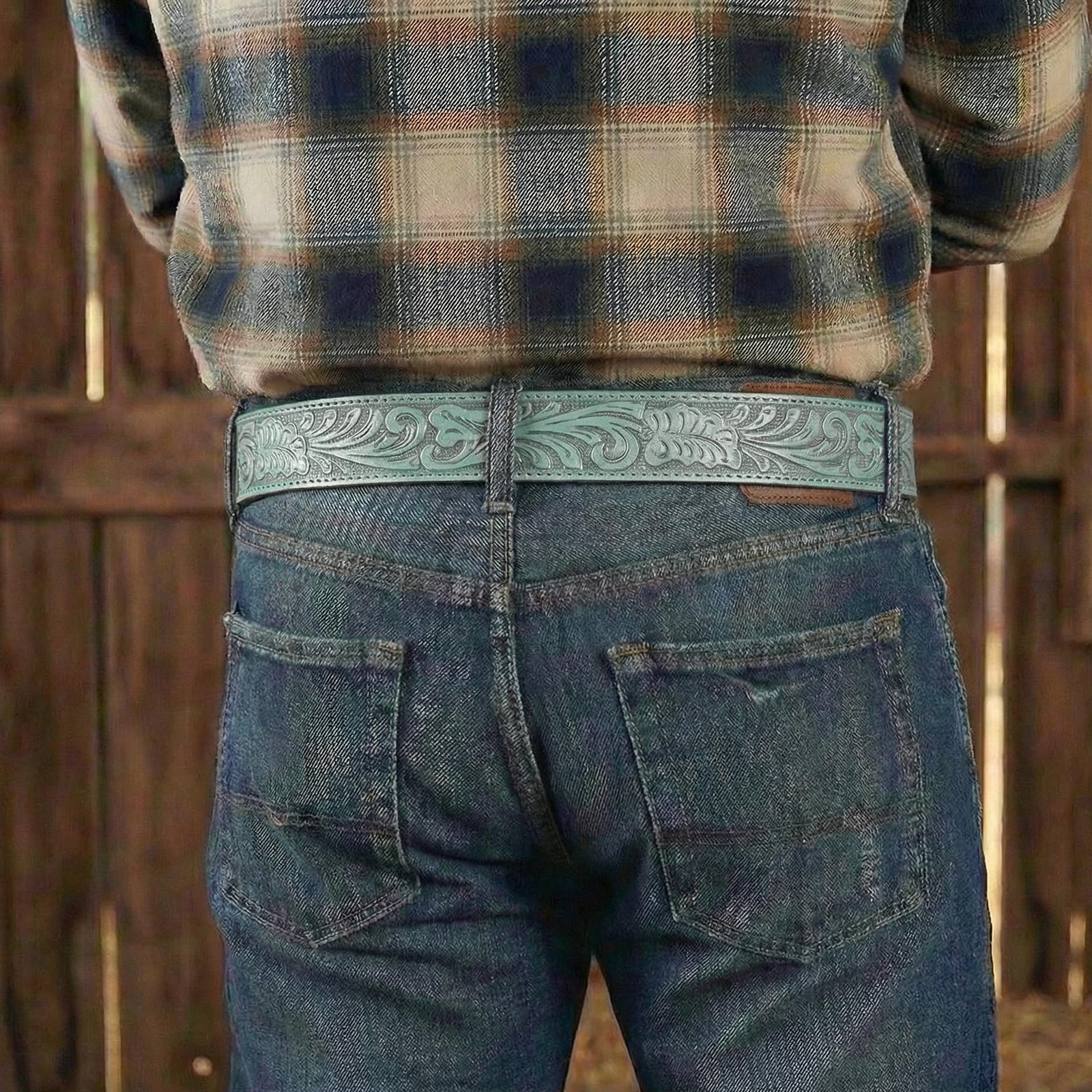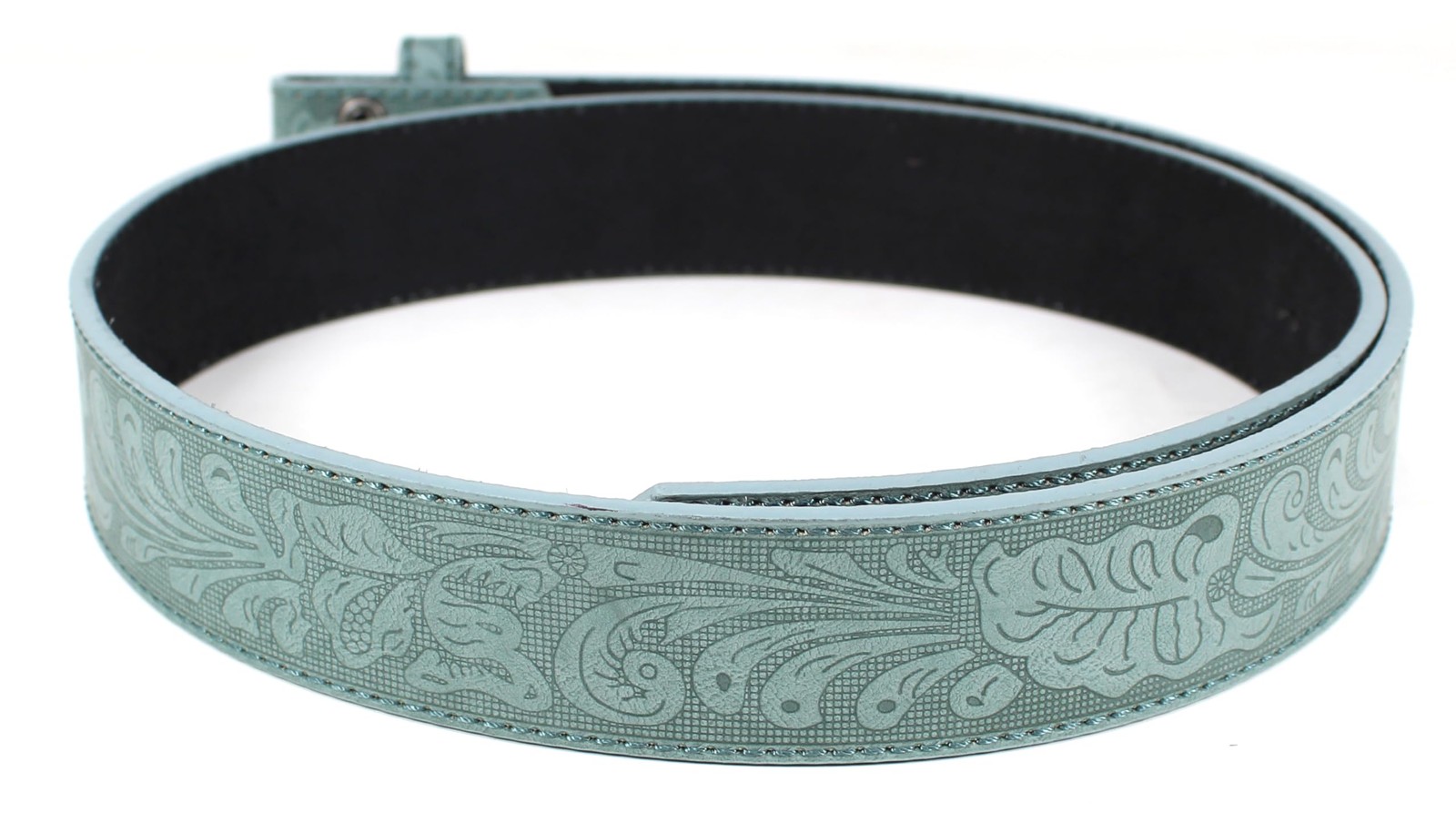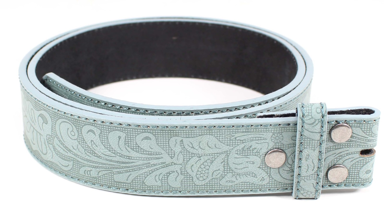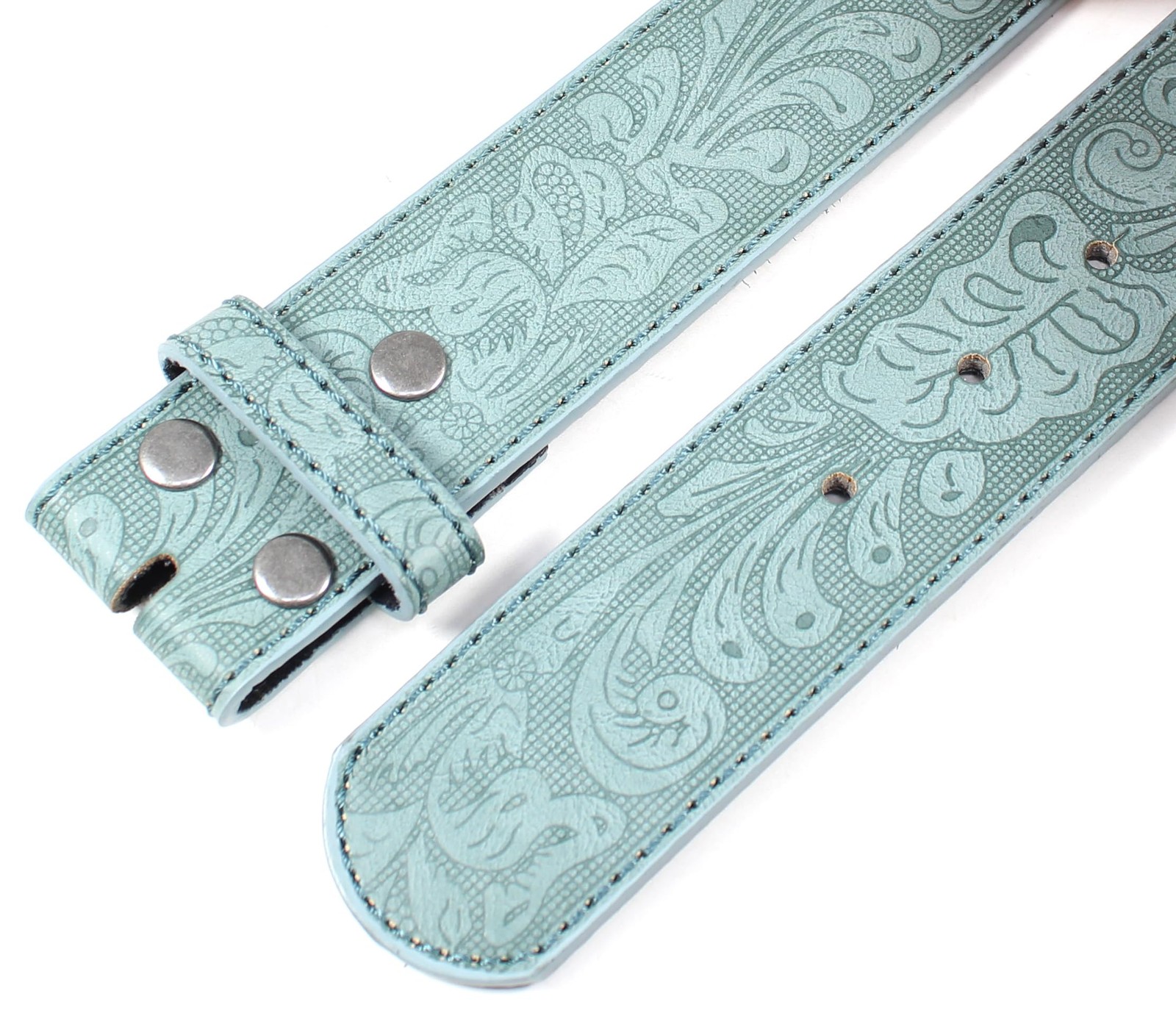 Leather Belt Strap with Embossed Western Scrollwork 1.5 Wide with Snaps Tea...