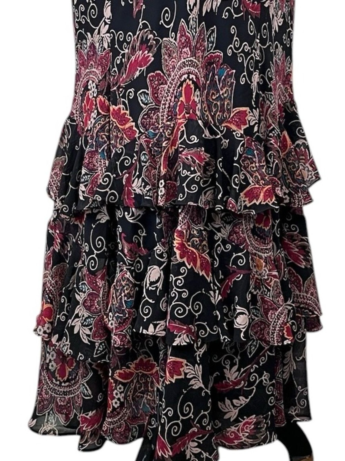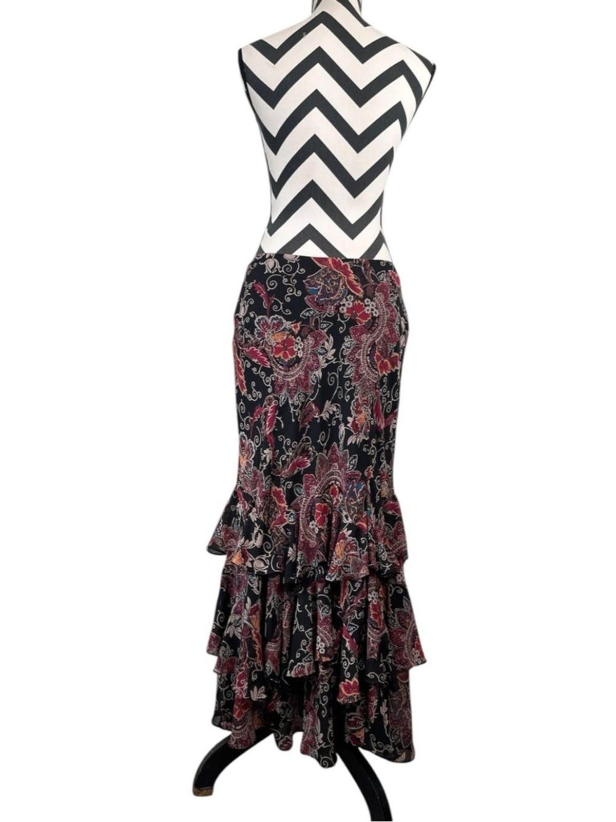 Vintage 90's Y2K Sz 10 Dark Floral Boho Fairycore Sheer Tiered Ruffle Midi Skirt