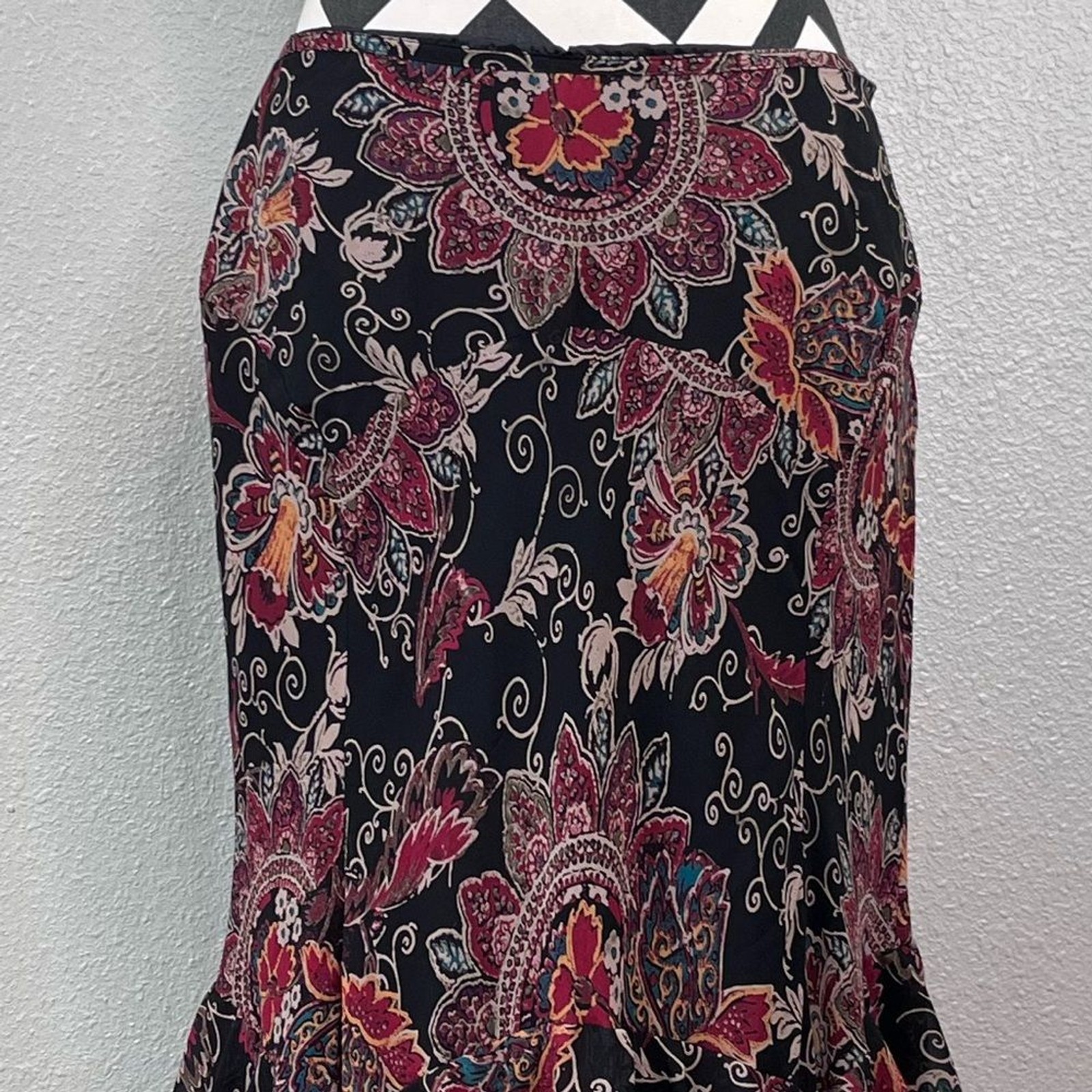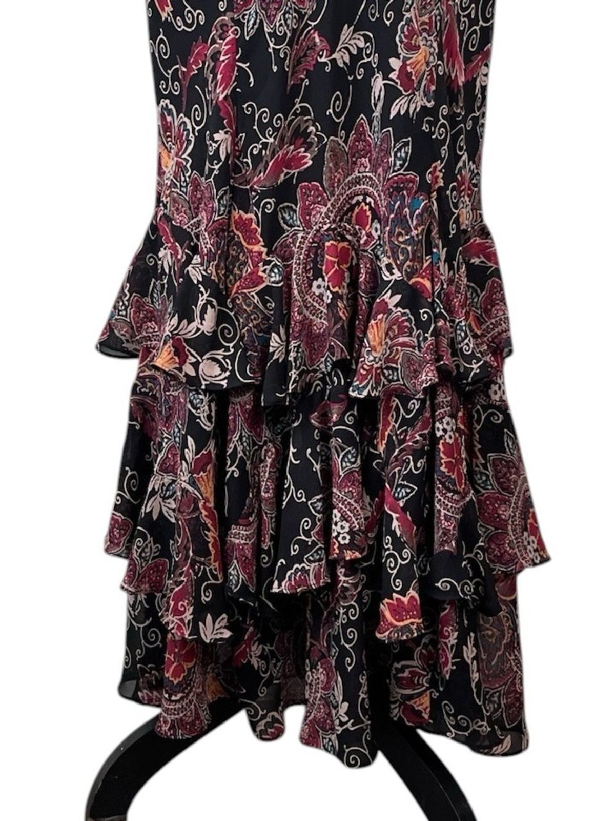 как выглядит Vintage 90s Y2K Sz 10 Dark Floral Boho Fairycore Sheer Tiered Ruffle Midi Skirt фото
