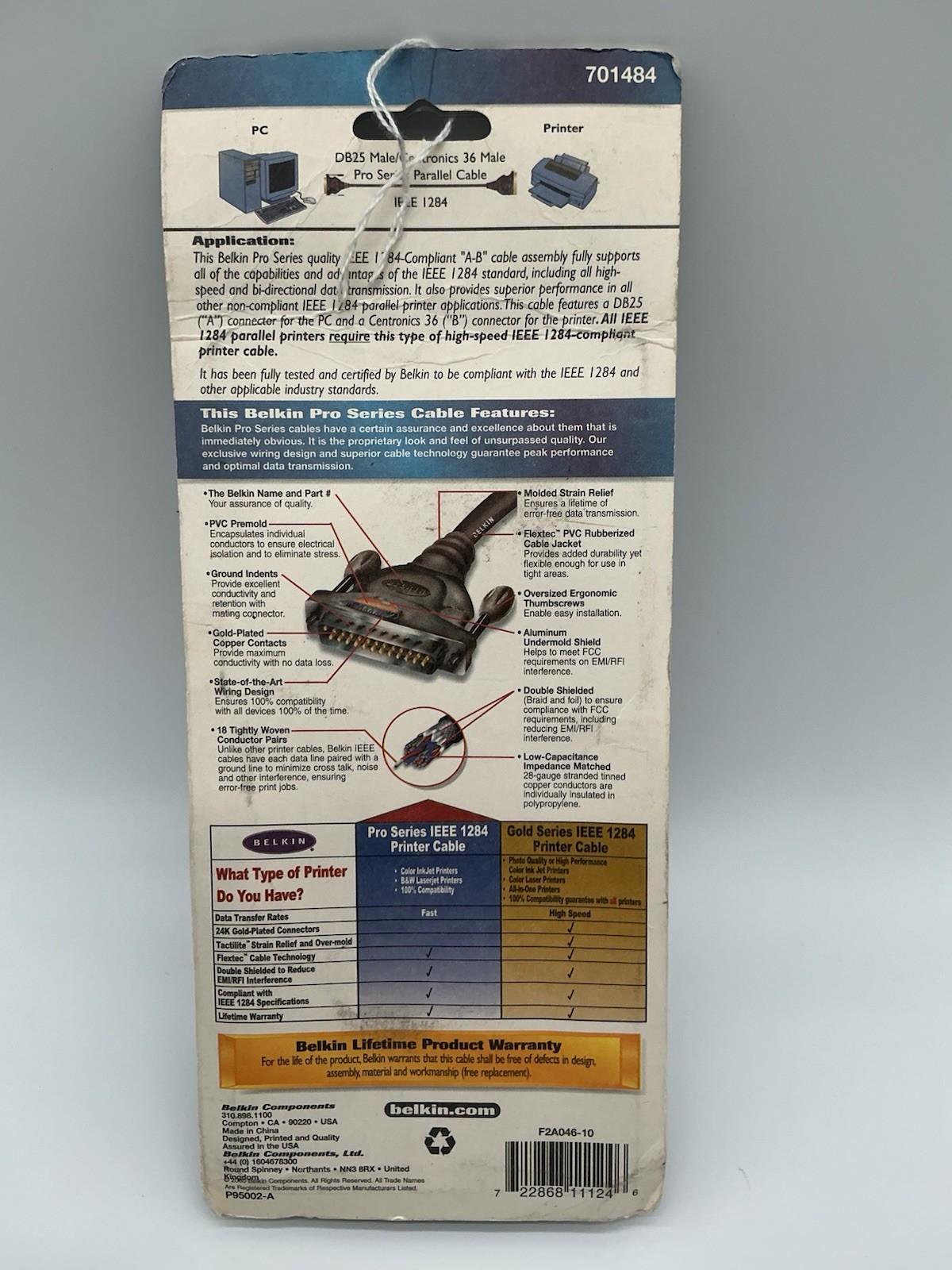 BELKIN PRO SERIES IEEE 1284 PARALLEL PRINTER CABLE DB25 MALE/CENTRONICS 36 MALE