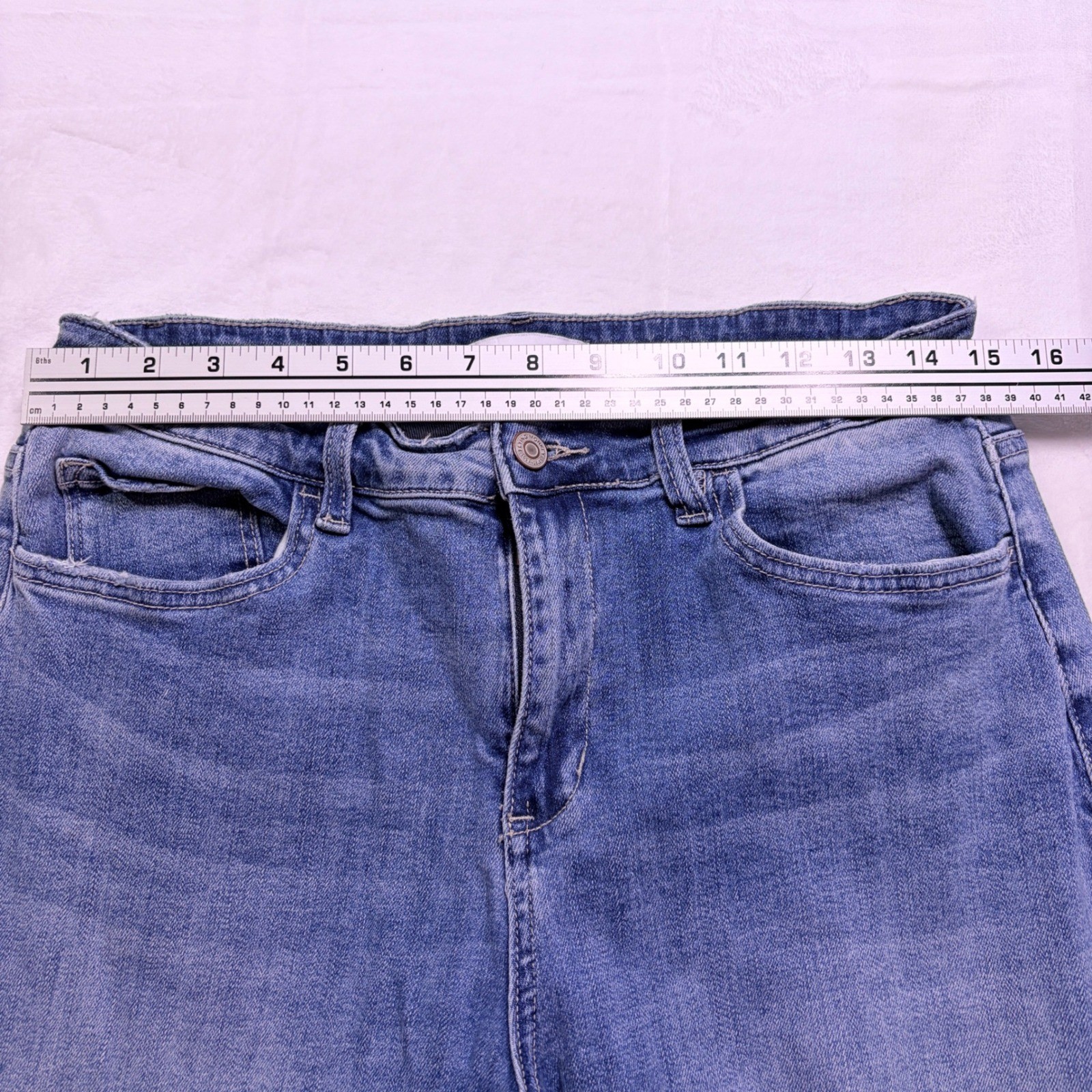как выглядит Flying Monkey Jeans Wide Leg High Rise Blue Raw Hem F5391 Size 31 фото