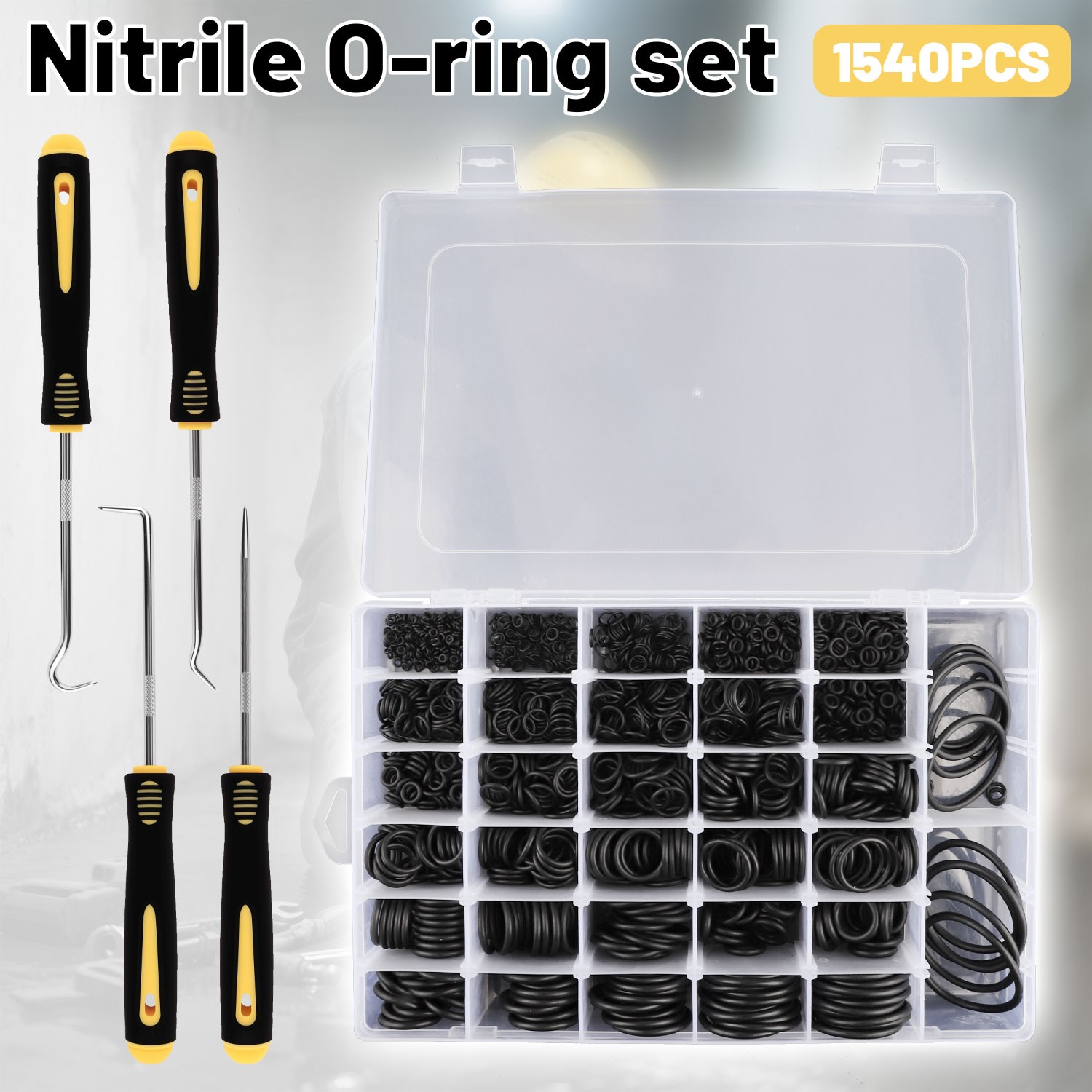 как выглядит 1540 Pcs O Ring Kit 32 Size Nitrile Rubber Oring Assortment Set for Car Auto Veh фото