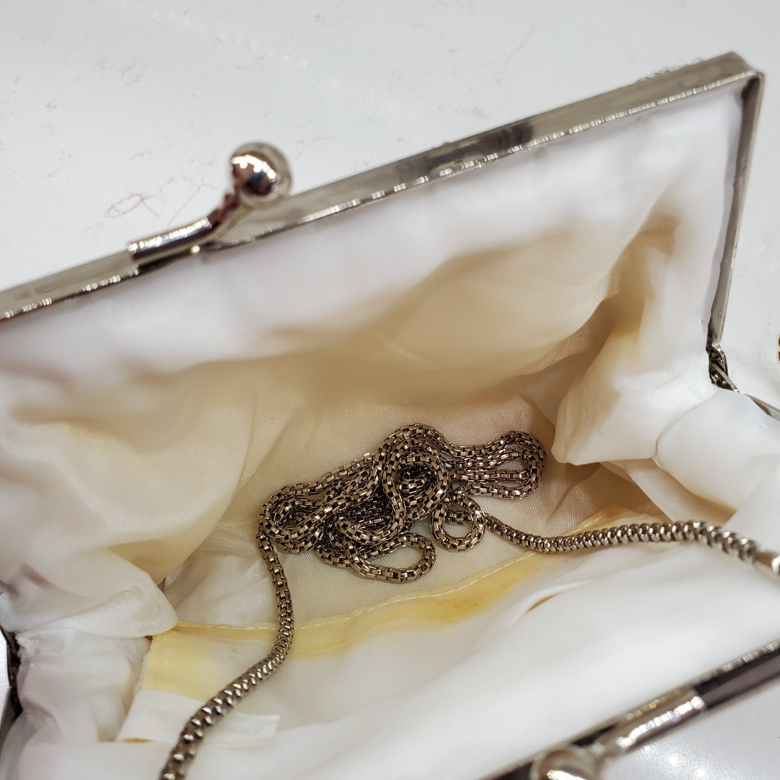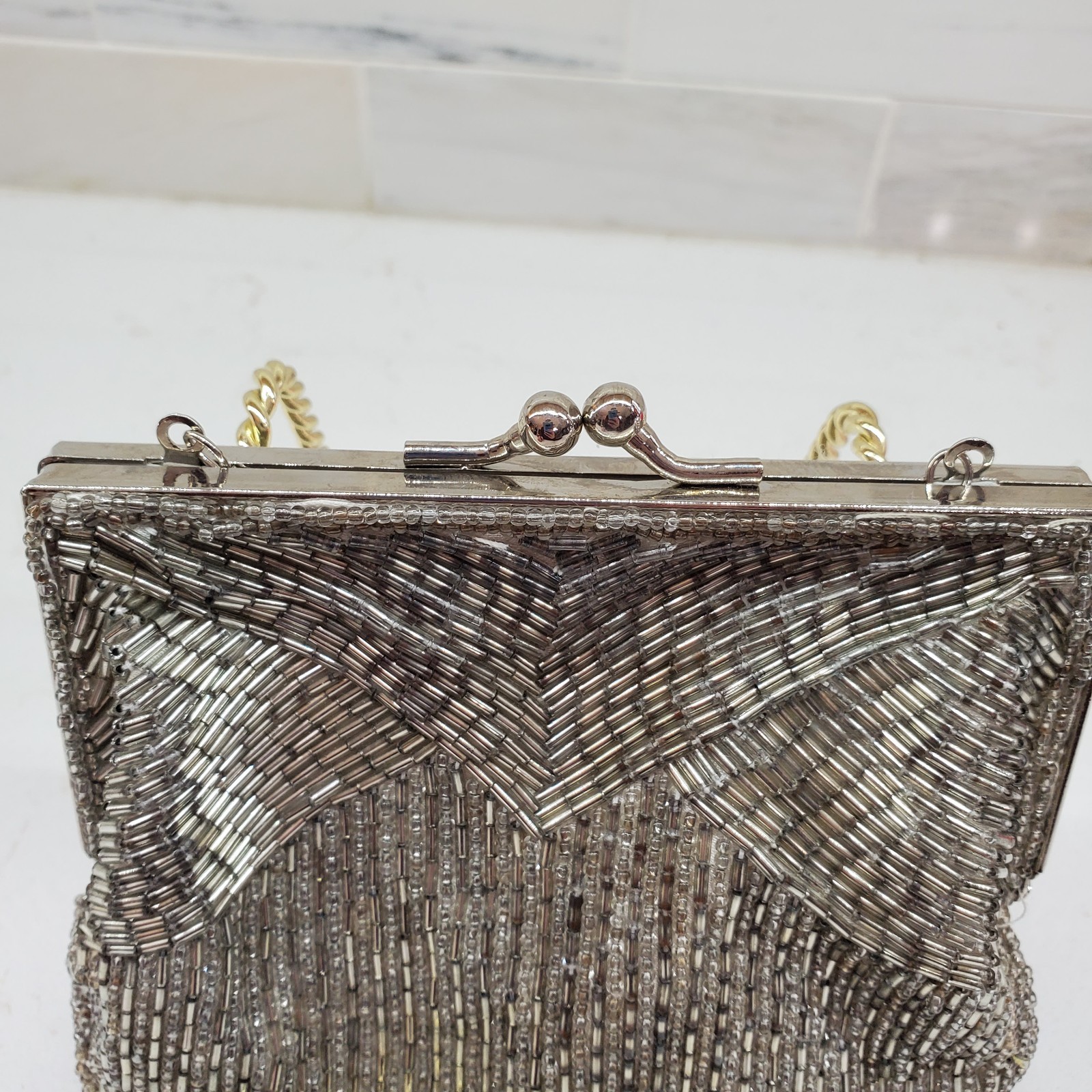 Luxury MAGID Silver Bugle Beaded Evening Bag Snake Chain Strap White Lining