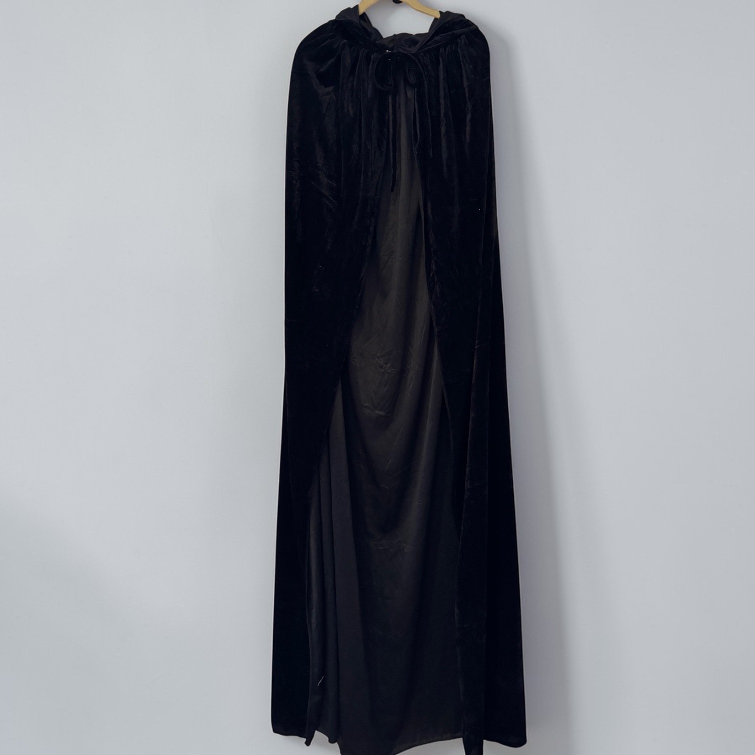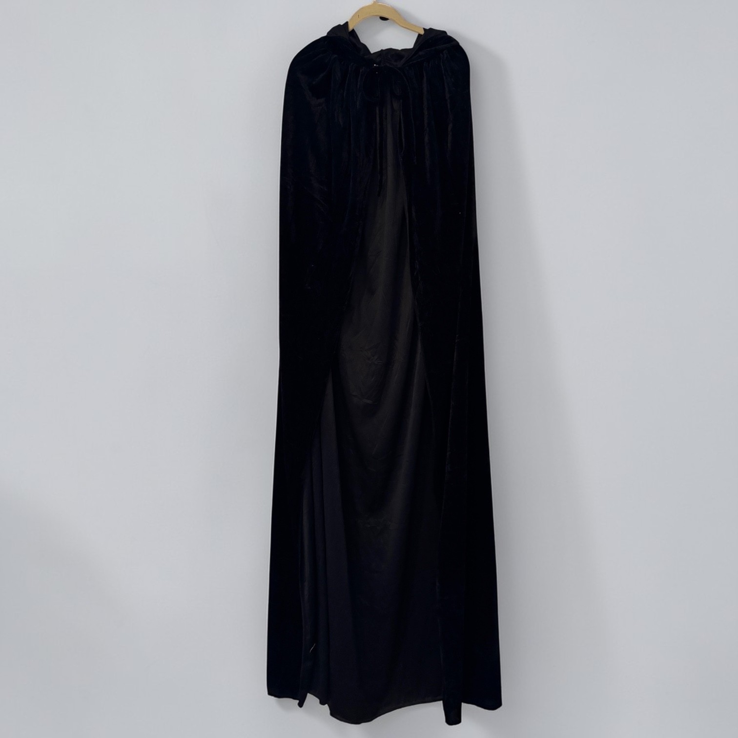 Extra Long Black Velvet Hooded Cloak Wizard Vampire Halloween Cape Unisex NWOT