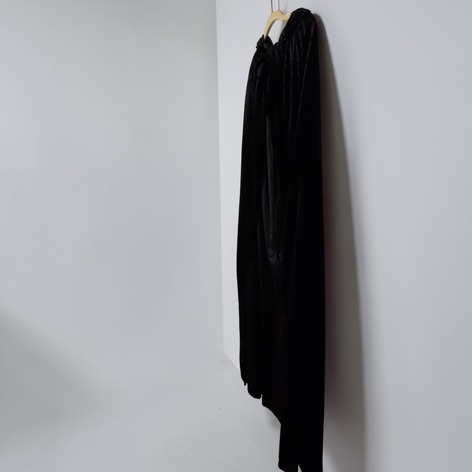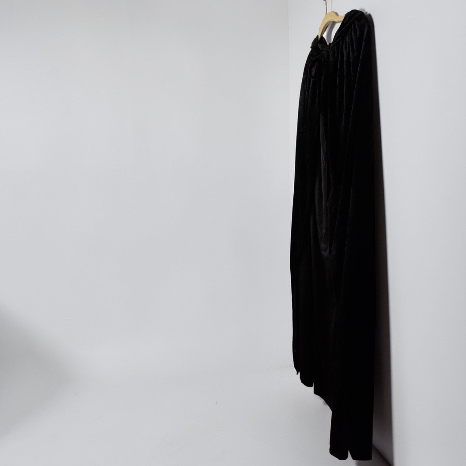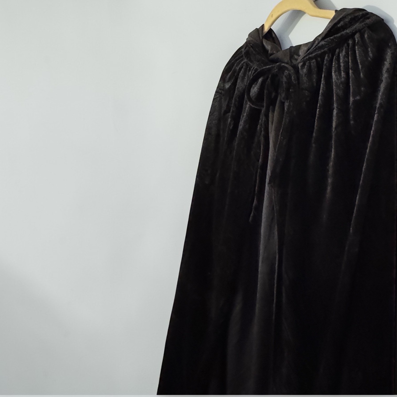 как выглядит Extra Long Black Velvet Hooded Cloak Wizard Vampire Halloween Cape Unisex NWOT фото