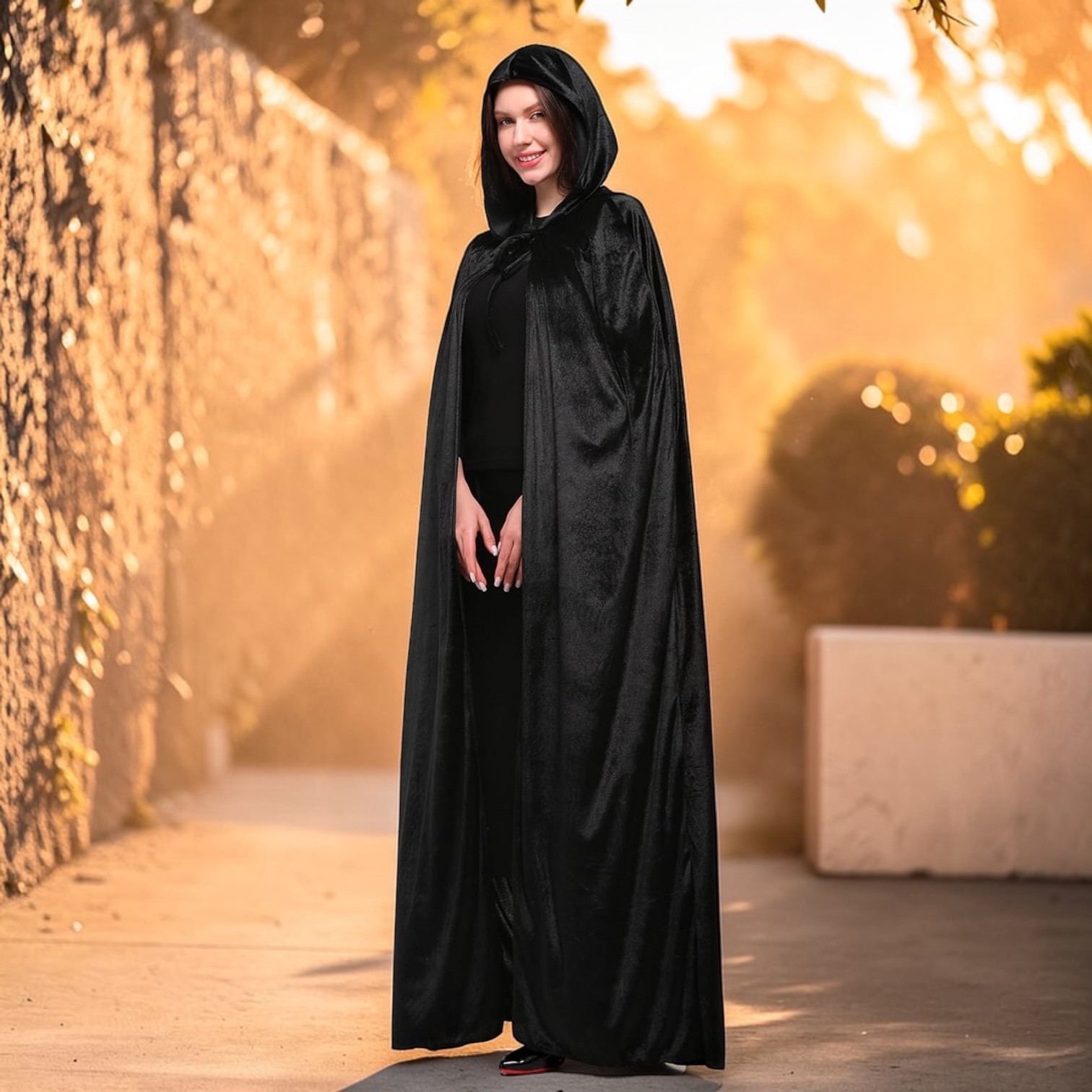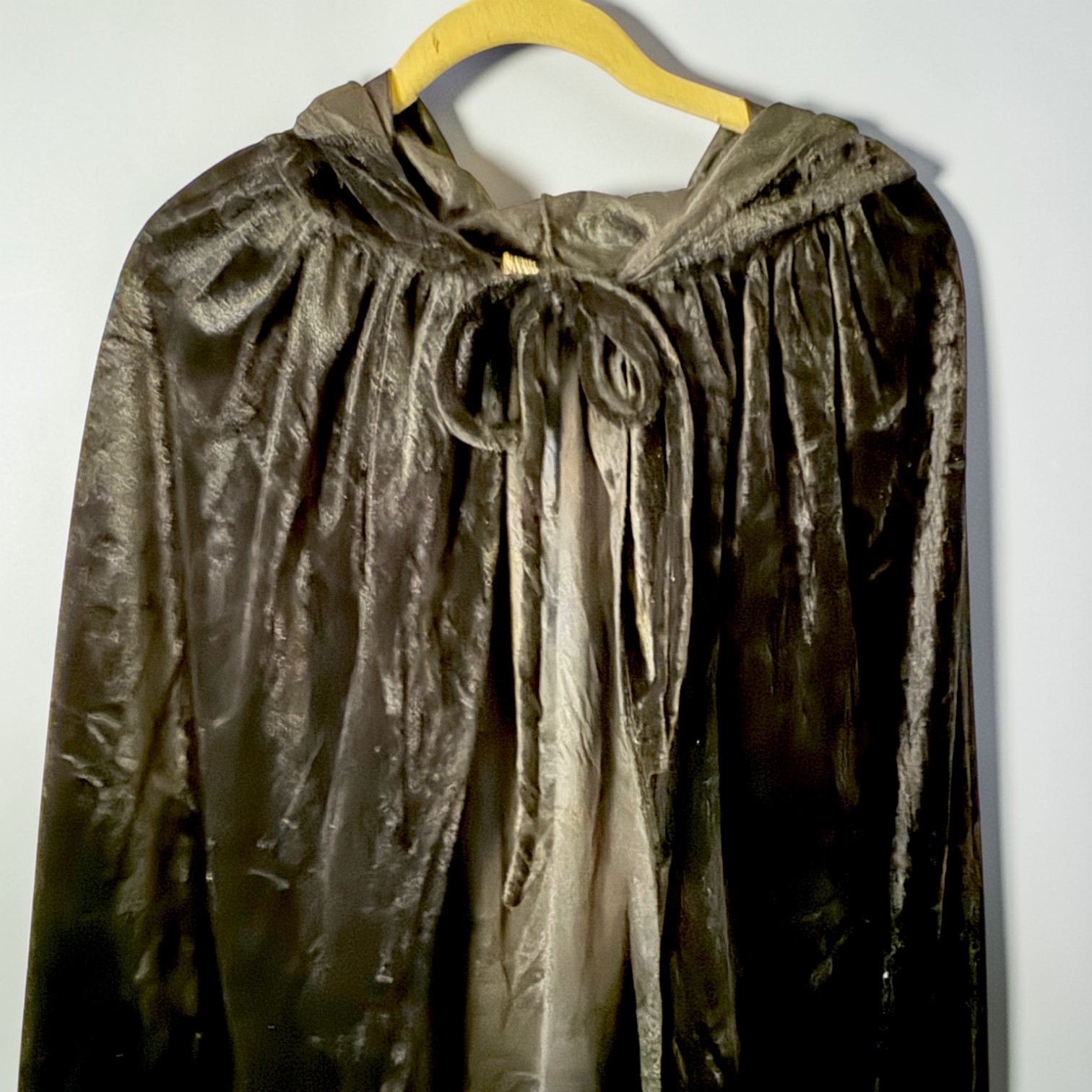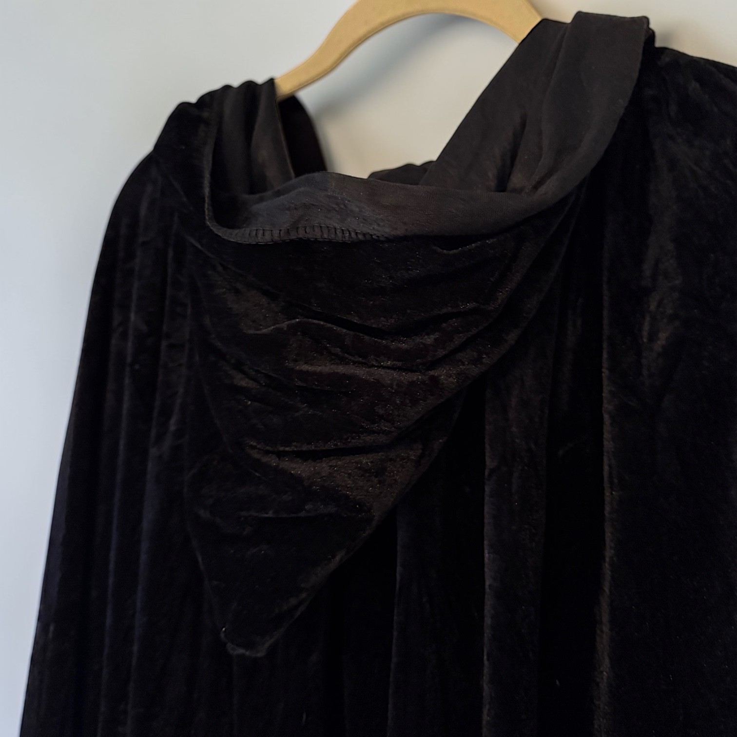 как выглядит Extra Long Black Velvet Hooded Cloak Wizard Vampire Halloween Cape Unisex NWOT фото
