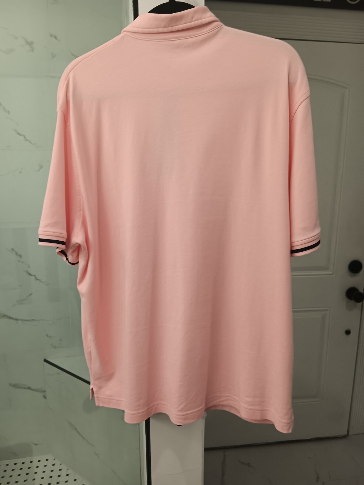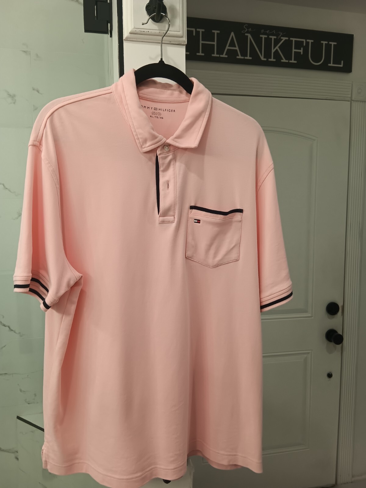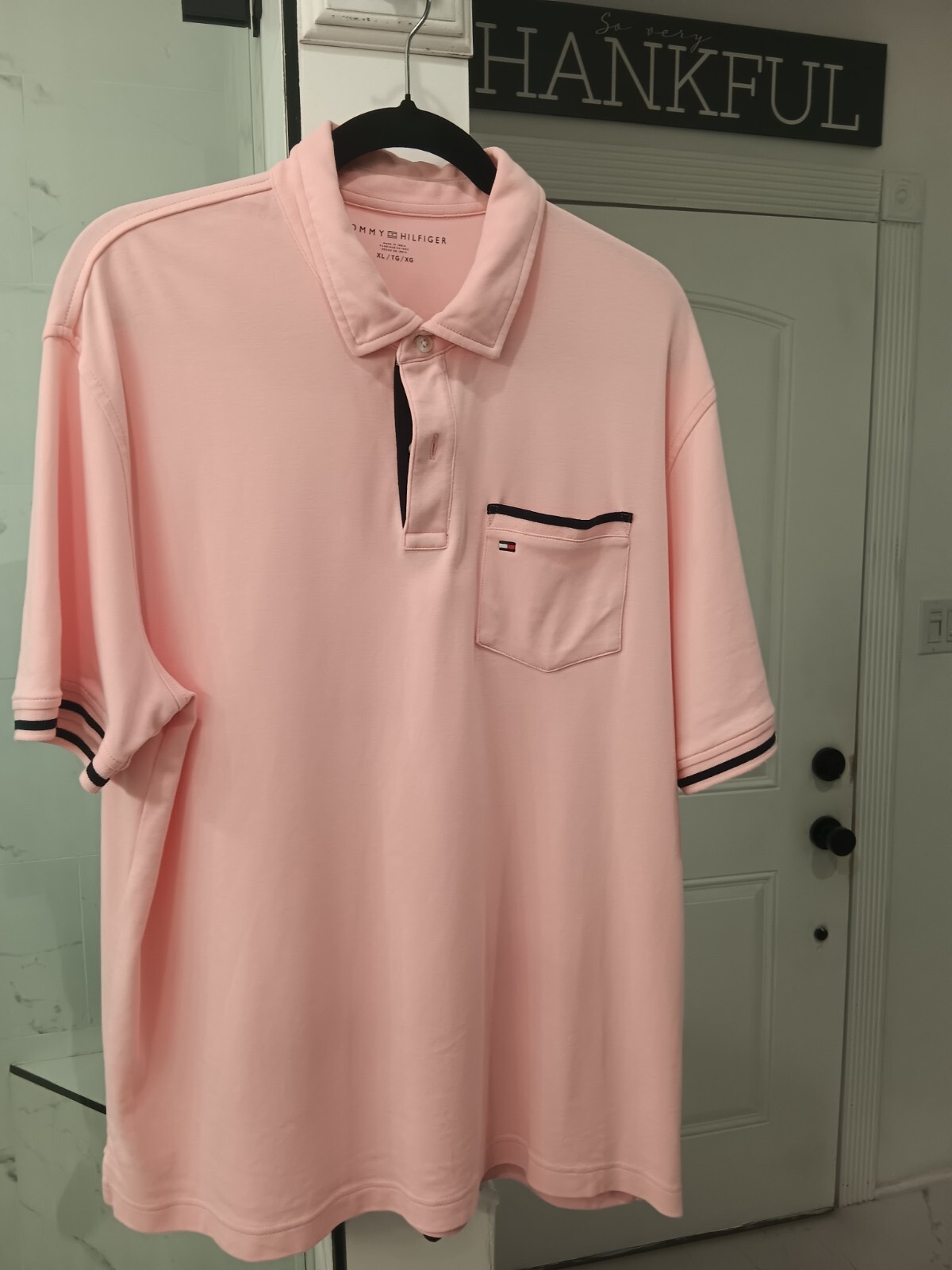 как выглядит TOMMY HILFIGER MENS PINK POLO SHIRT, XL, Navy Trim, Relaxed Fit, Nice фото
