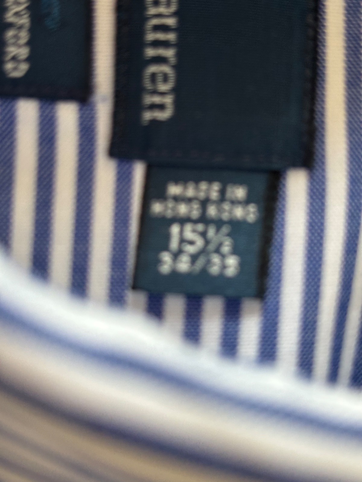 как выглядит Polo by Ralph Lauren Andrew Classic Fit Dress Shirt 15.5 32/33 blue stripe фото