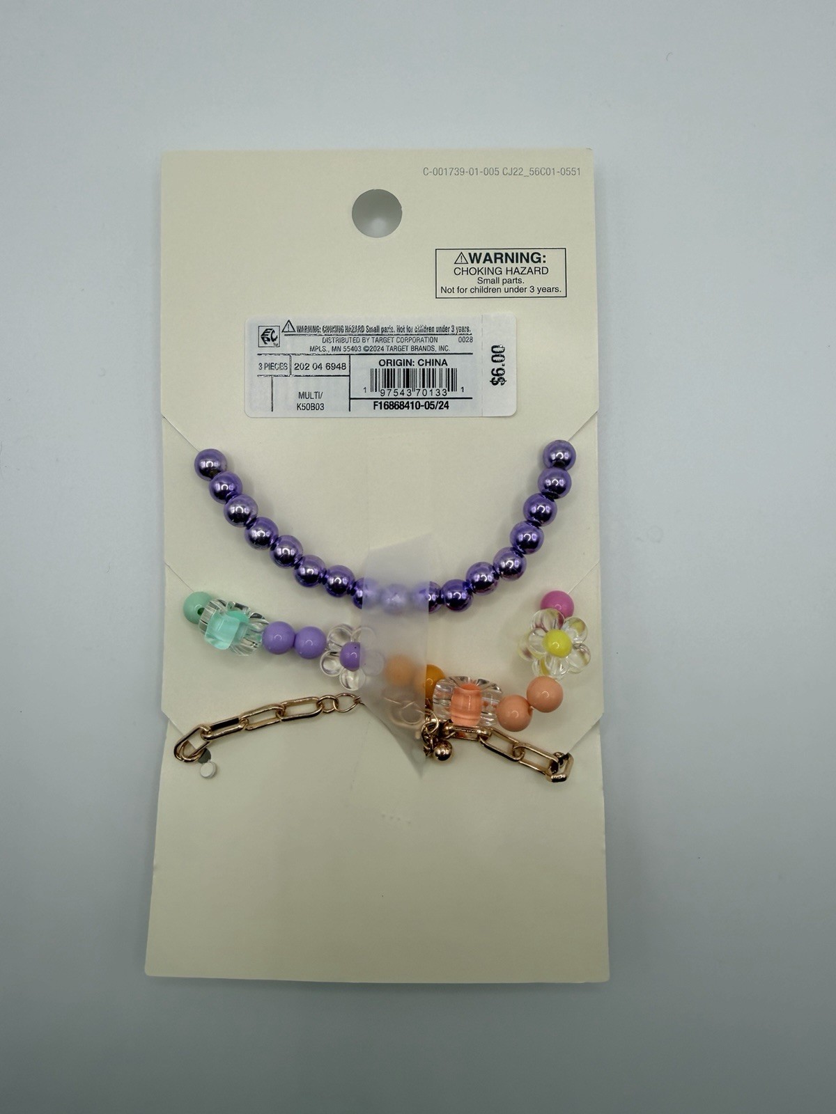 Cat And Jack 3 pc Bracelet Set - Beaded Charm Flower