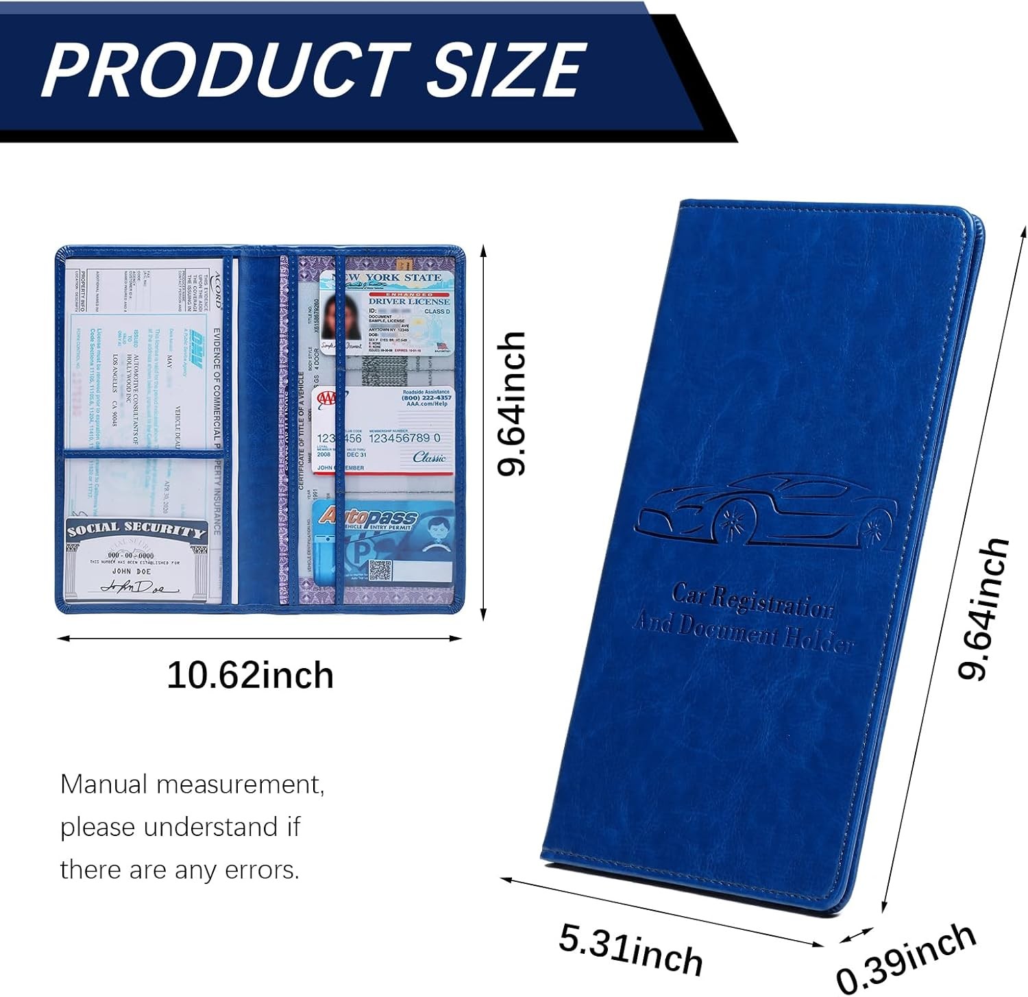 Car Registration and Insurance Card Holder for Women Men, Dark Blue Glove Box Pa
