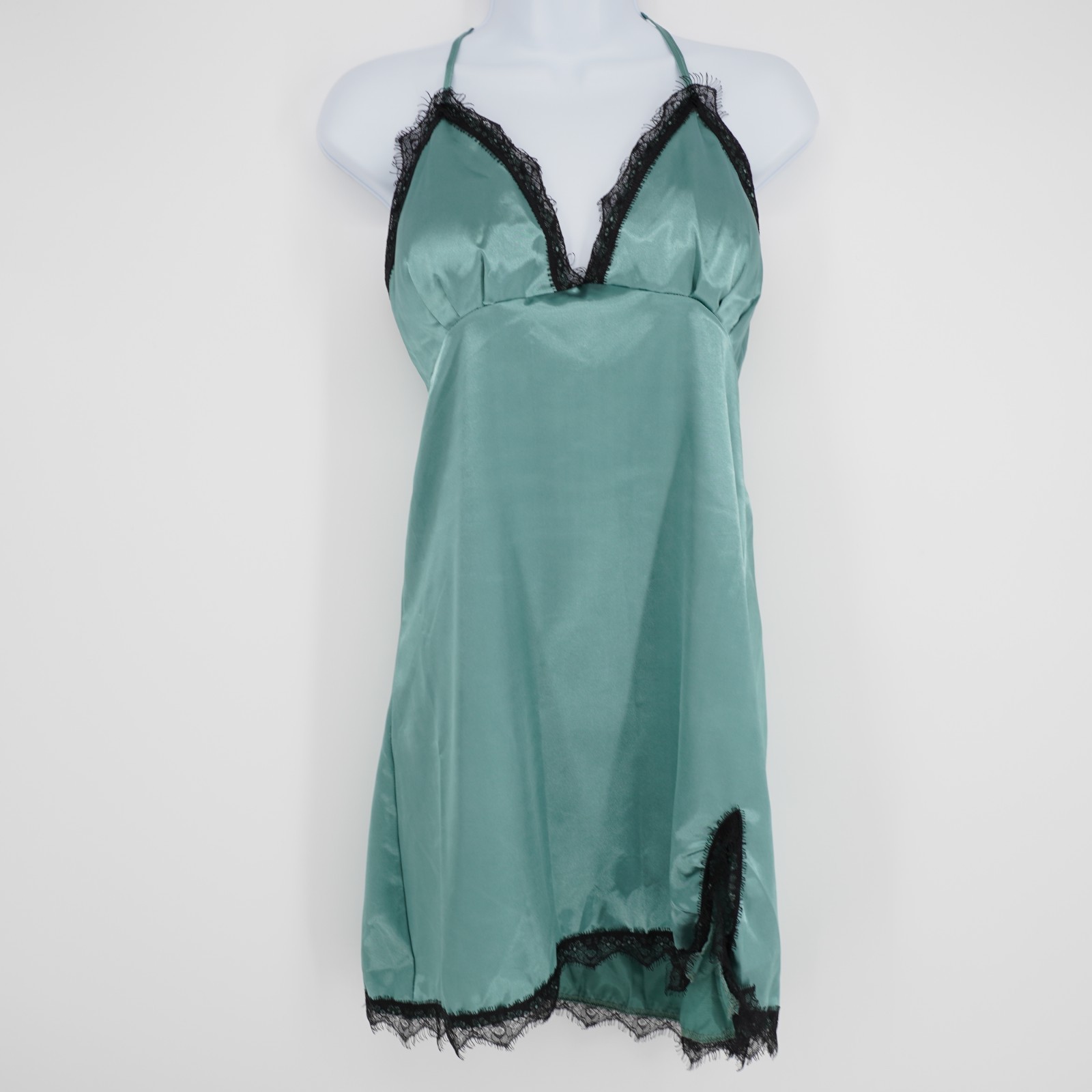 как выглядит Womens Satin Babydoll Slip Dress Small Green Lace Trim Fairy Coquette фото