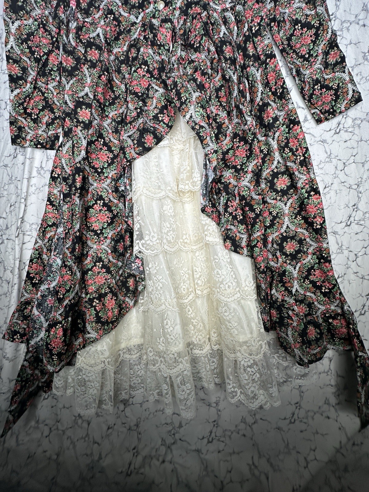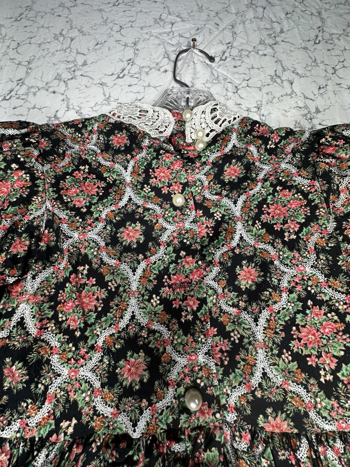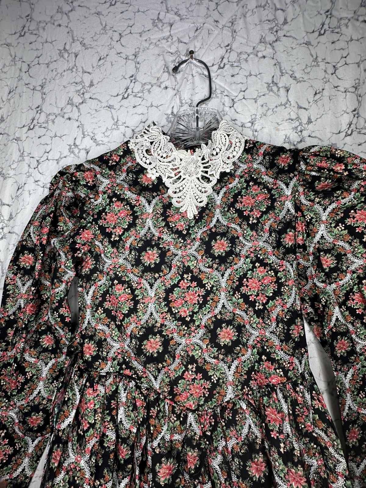 как выглядит Vintage 1980s Storybook Heirlooms Floral Print Floral Lace Lined Dress Sz:6X фото