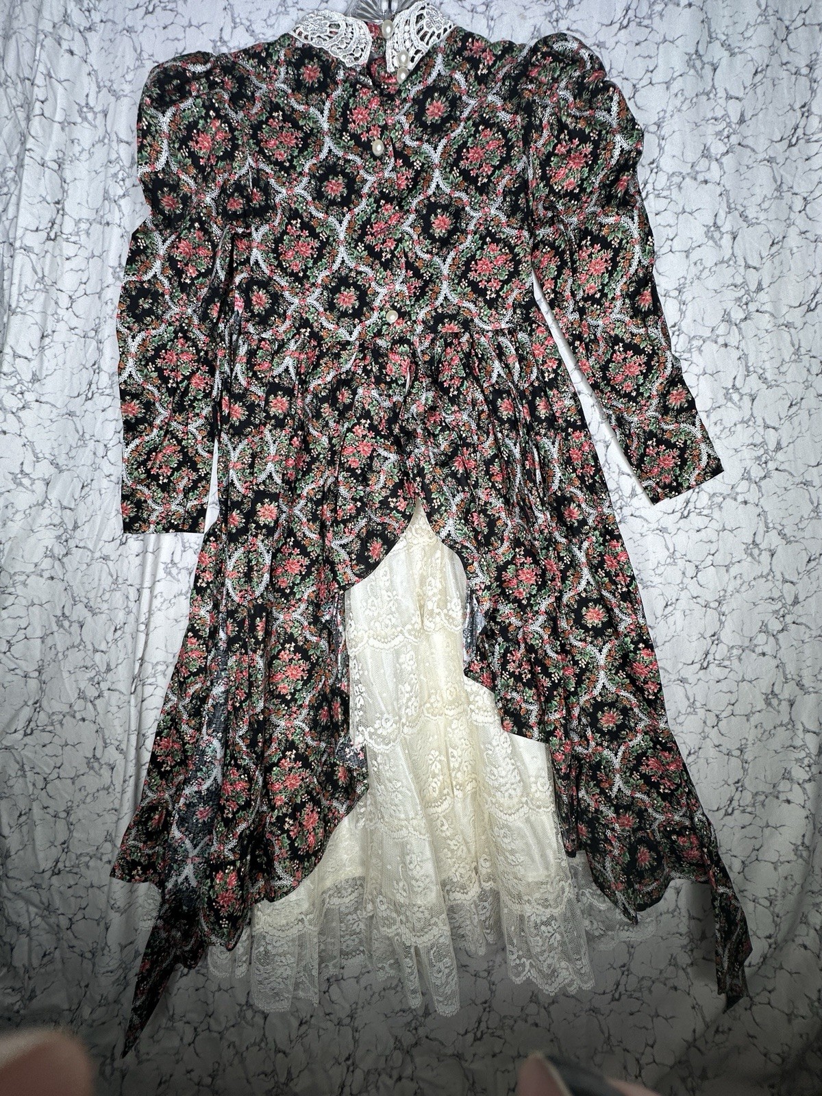 Vintage 1980s Storybook Heirlooms Floral Print Floral Lace Lined Dress Sz:6X