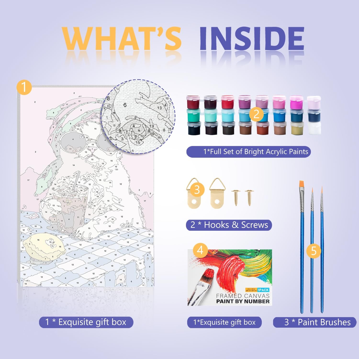 Framed Paint by Numbers Kit for Adults Beginner Kids, Vintage Flowers Easy Pai