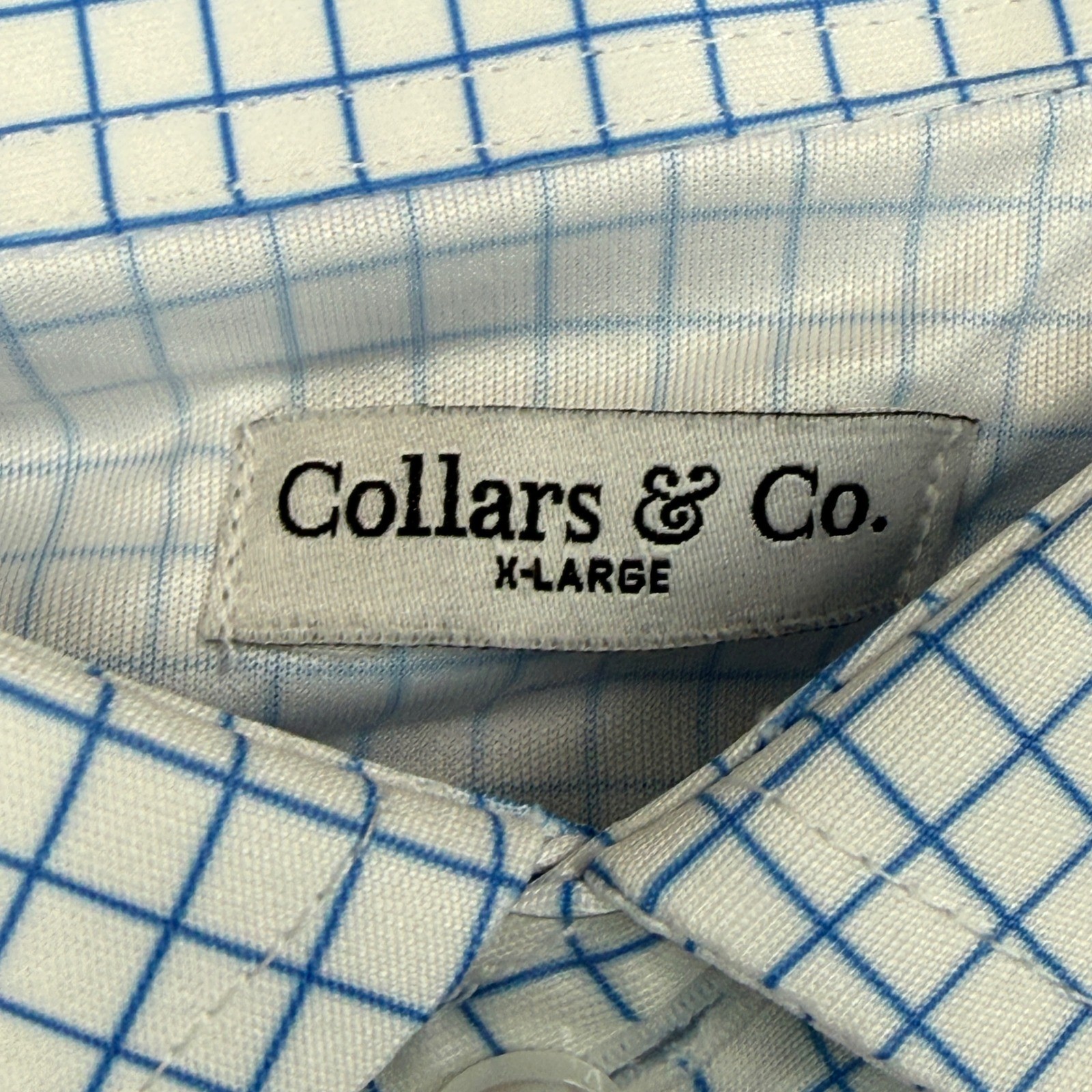 как выглядит Collars Co Mens Size XL Polo Shirt Blue White Windowpane Dress Collar NWT фото