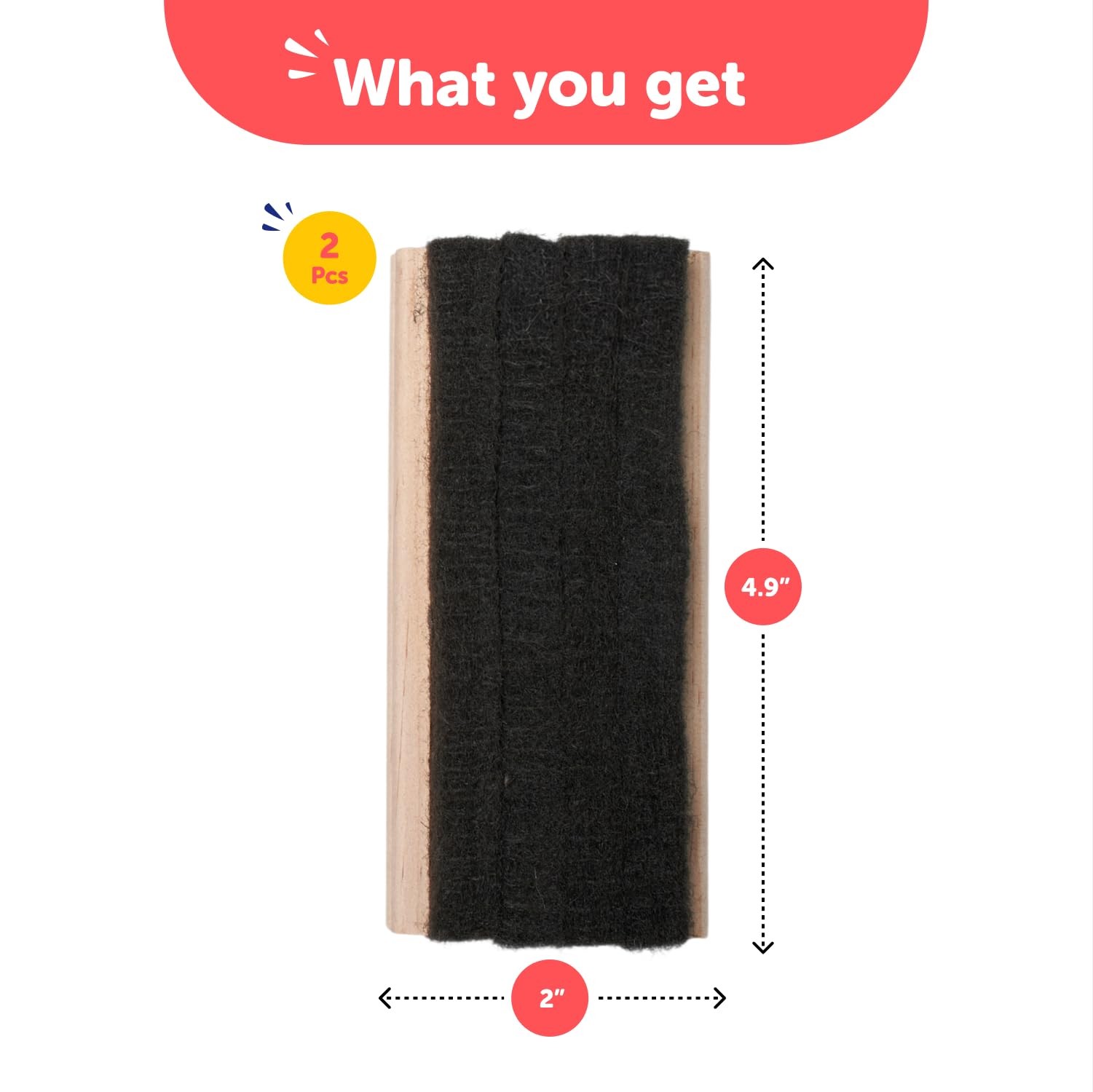 • Traditional Chalkboard Eraser 2 Pack 4.9 Inch Premium Chalk Erasers with Woo...