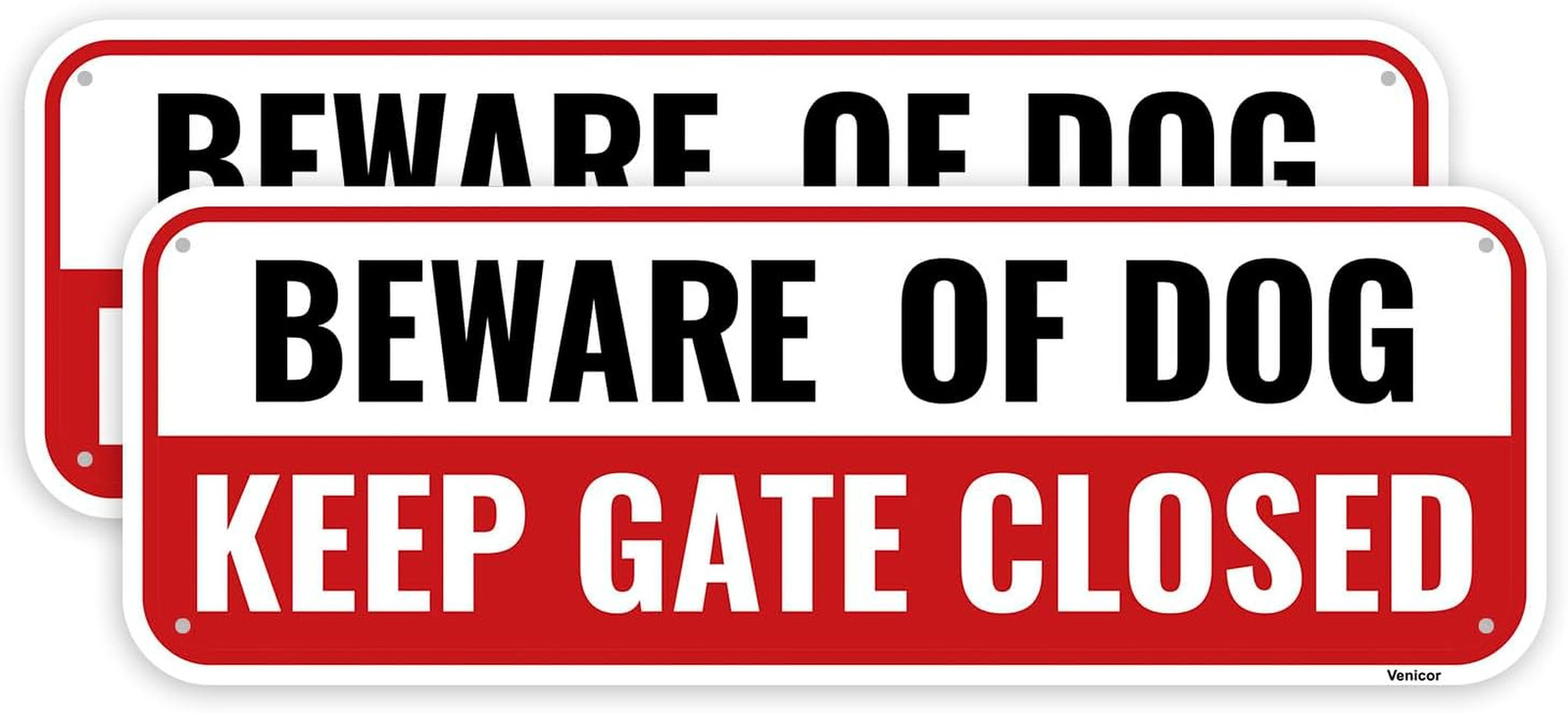 2PC Beware of Dog Sign, 10 X 3.5 Inches - Aluminum - Keep Gate Closed Signs for