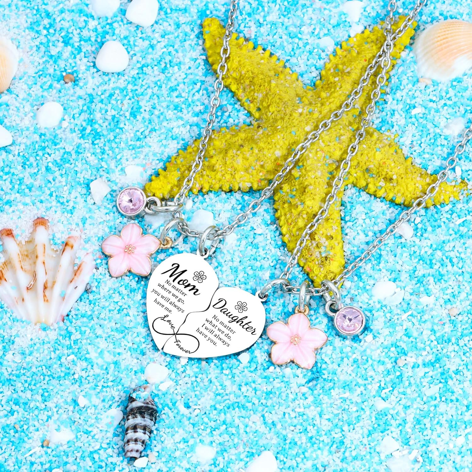 2Pcs Mother Daughter Heart Matching Pendant Necklace Set Gifts for Mom Mothers D