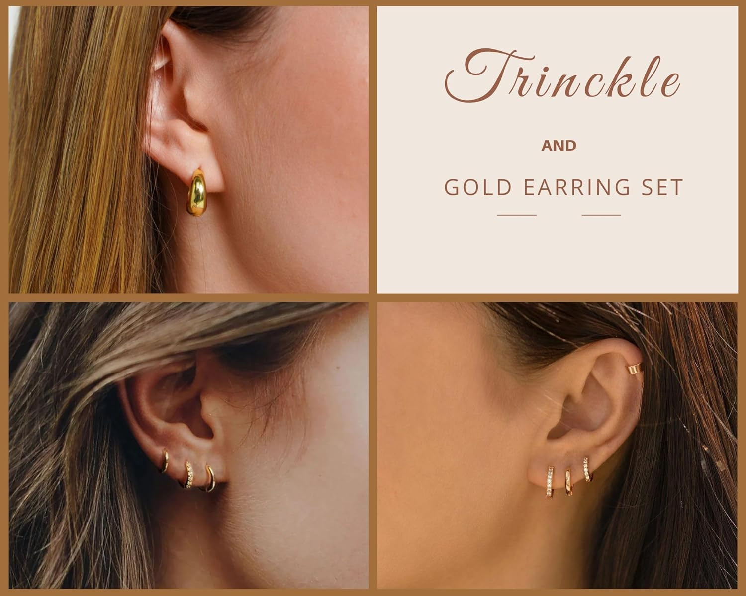 3 Pair Small Gold Hoop Earrings Set for Women, Huggie Hoop Earrings Earring Stac