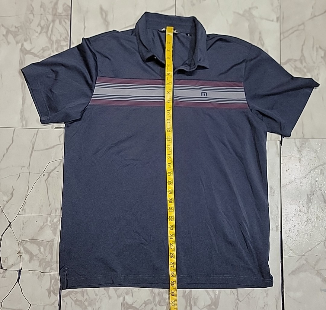 как выглядит Travis Mathew Performance Striped Blue Athletic Golf Polo Shirt Mens XL фото