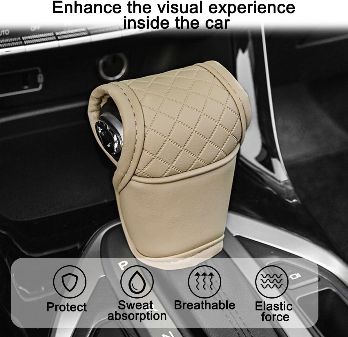 Gear Shift Knob Cover, Leather Vehicle Gear Shifter Stick Protector, Black