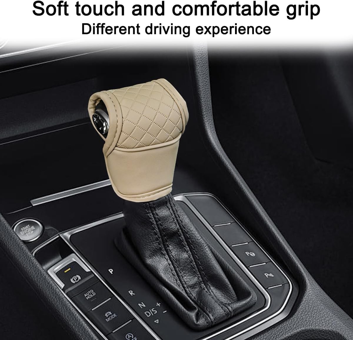как выглядит Gear Shift Knob Cover, Leather Vehicle Gear Shifter Stick Protector, Black фото