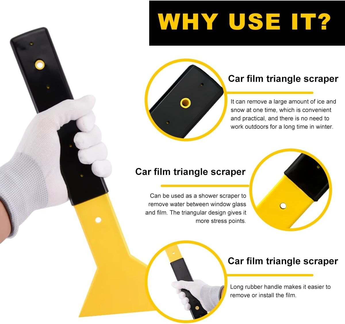 Window Tint Squeegee, Long Handle Triangle Scraper Vinyl Wrapping Tool Film Inst