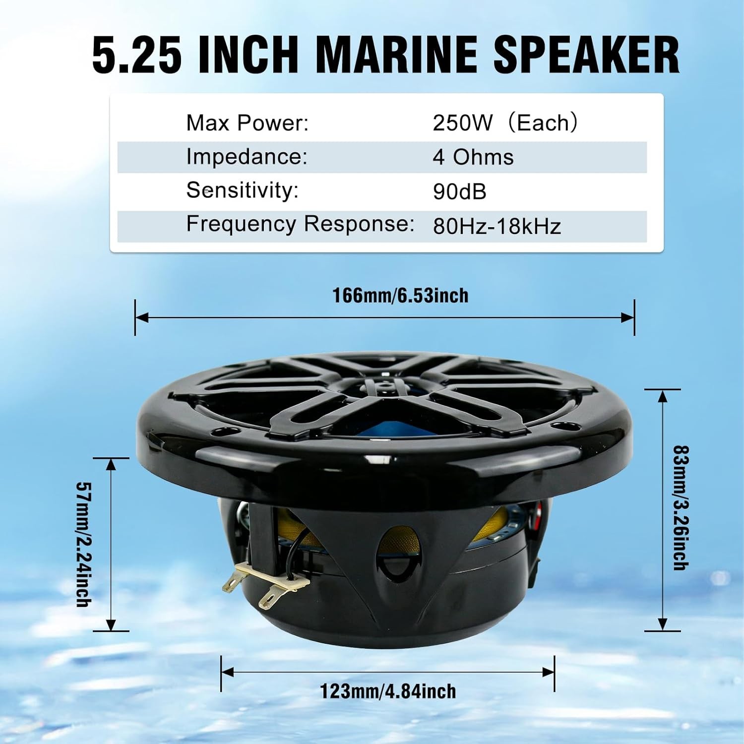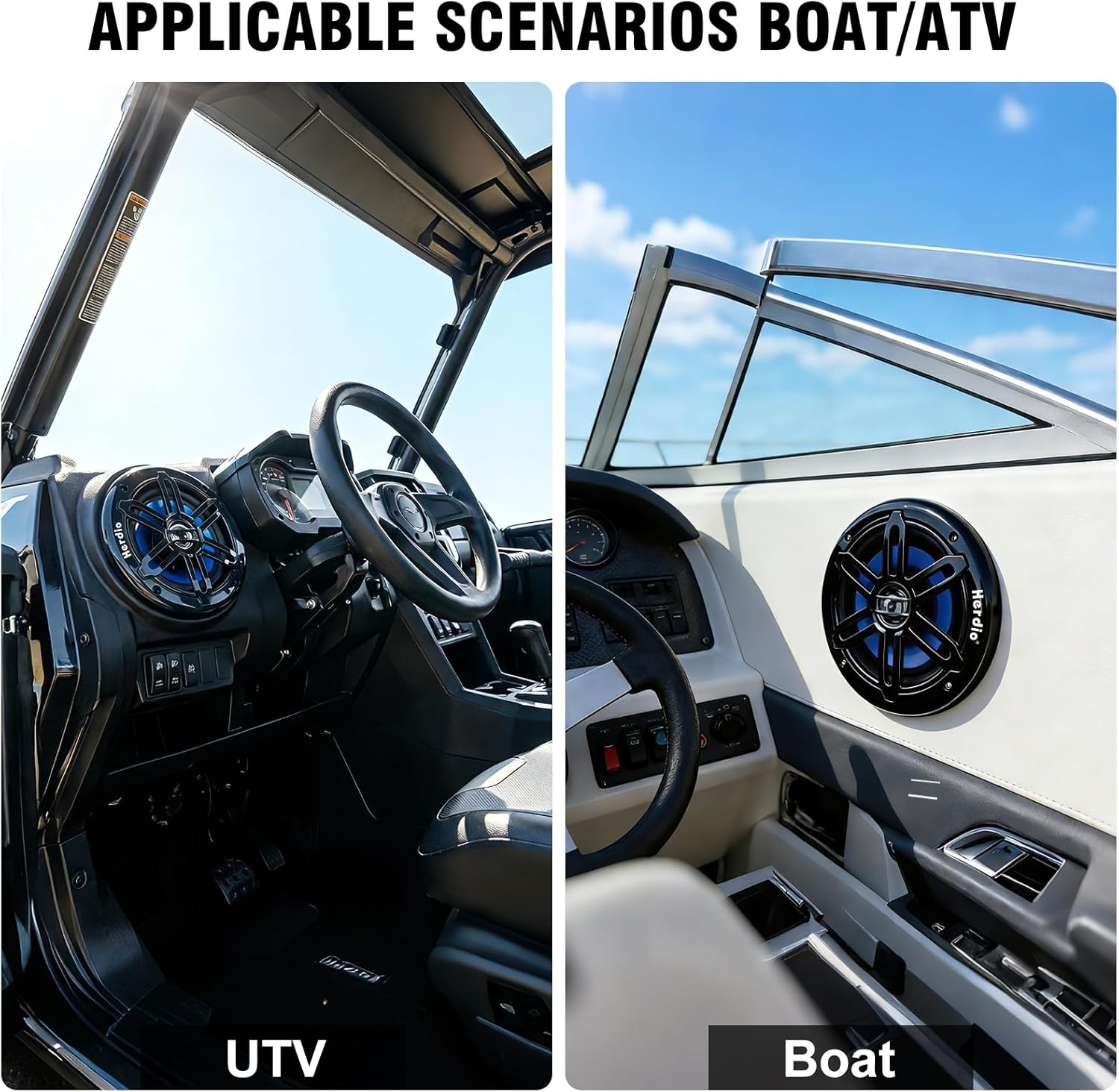 Herdio 5.25 Marine Speakers 250W IP66 w/t Blue LED Light for Boats, ATVs, UTVs