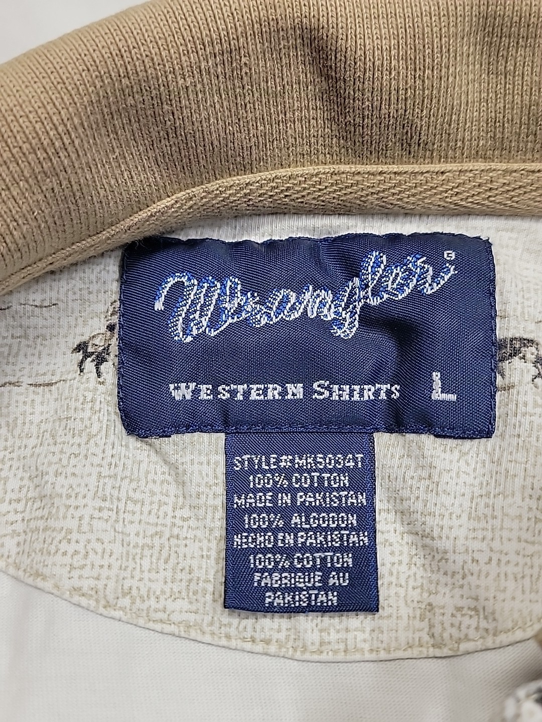 как выглядит Vintage 90s Wrangler Western Polo Shirt Aztec Horses Cowboy Rodeo Mens Large фото