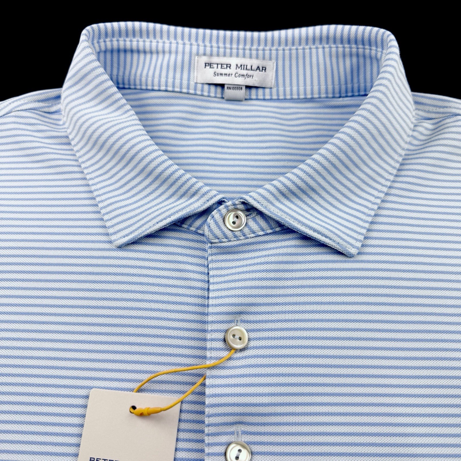 Peter Millar Crown Sport Performance Mesh Polo Striped Shirt Pale Blue 2XL