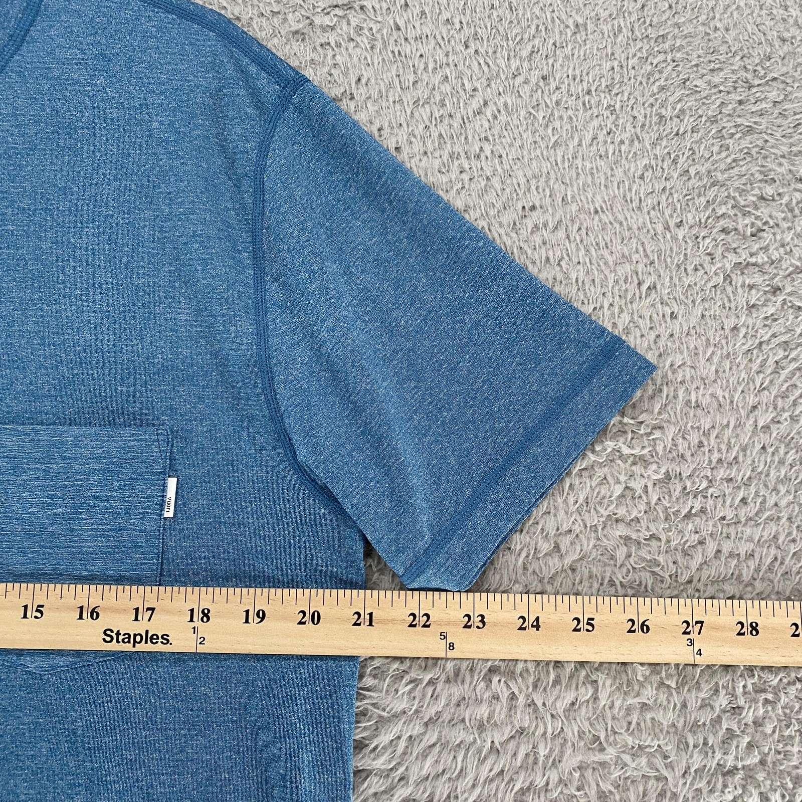 как выглядит Vuori Tradewind Shirt Mens Large Blue Heather Pocket Crewneck Stretch Tee Top фото