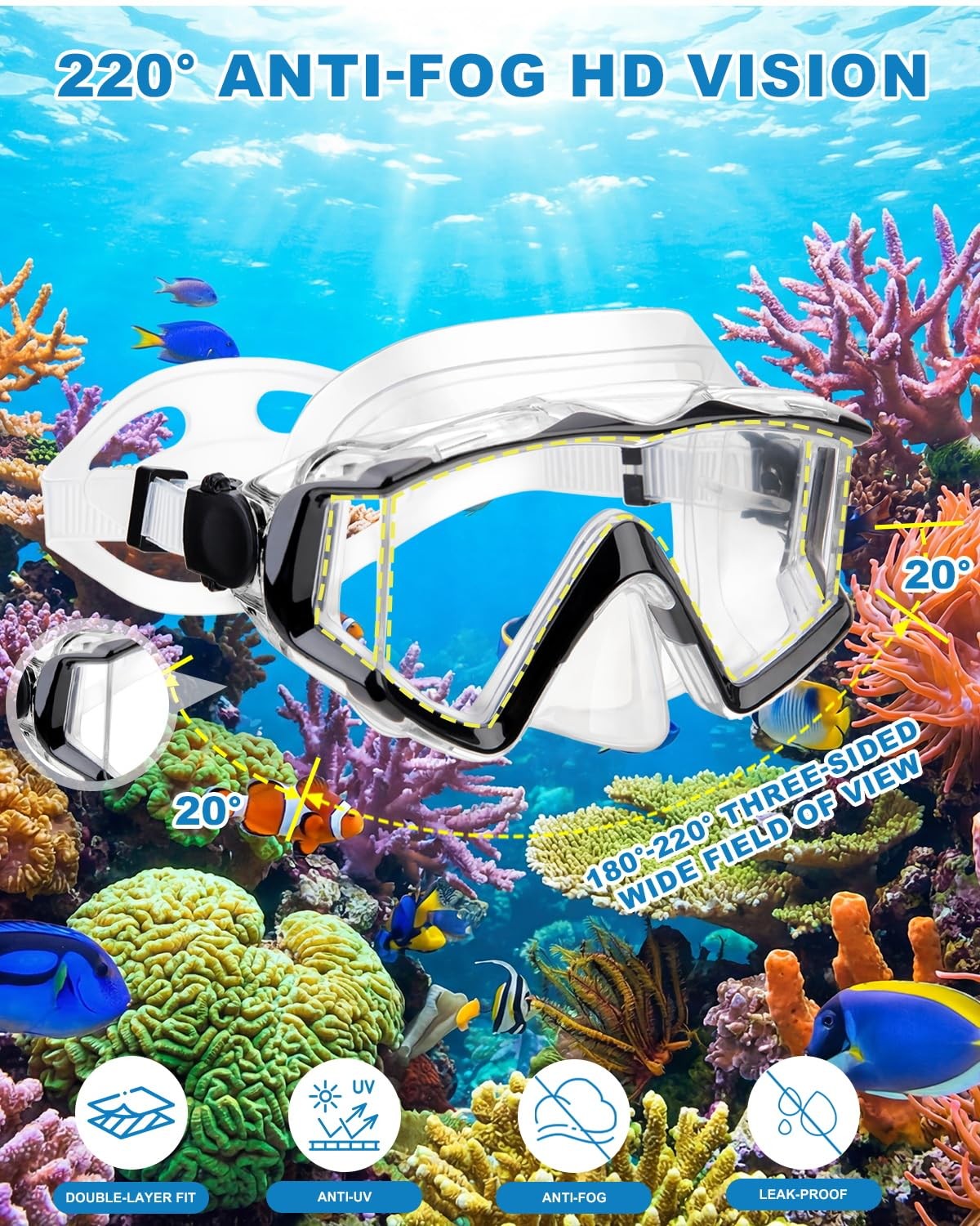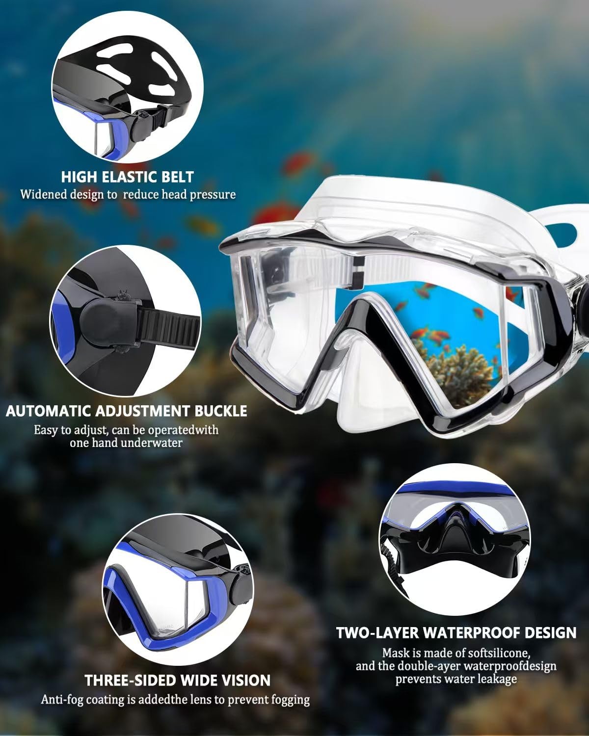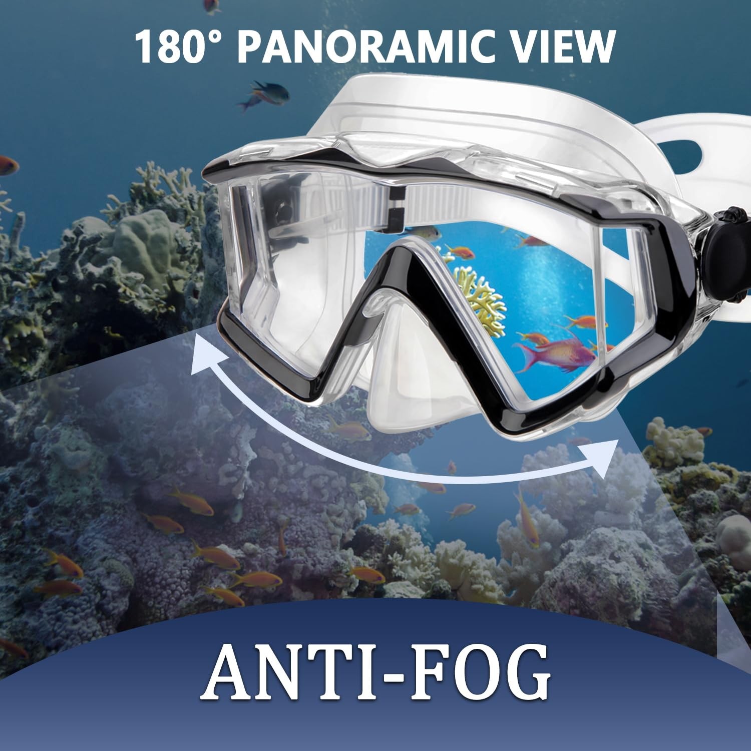 Diving mask Anti-Fog Swimming Snorkel Suitable Adult, Black transparent