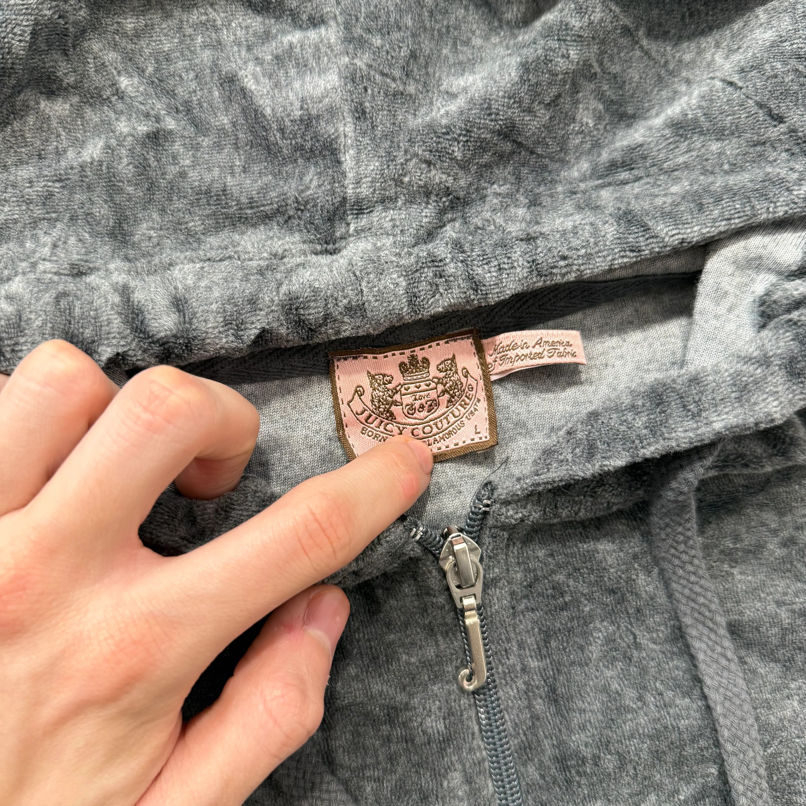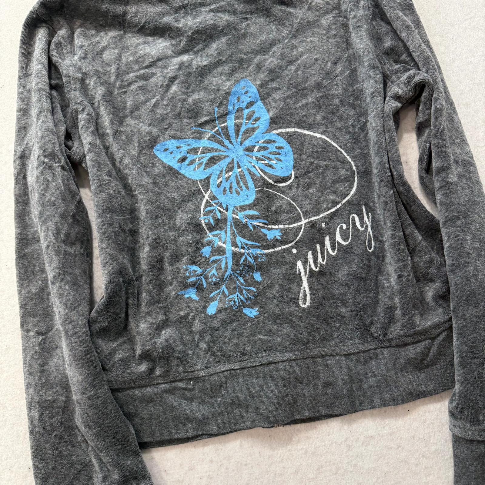 как выглядит Vintage Juicy Couture Womens Dark Heather Gray Velour Zip Up Hoodie Y2K Size L фото