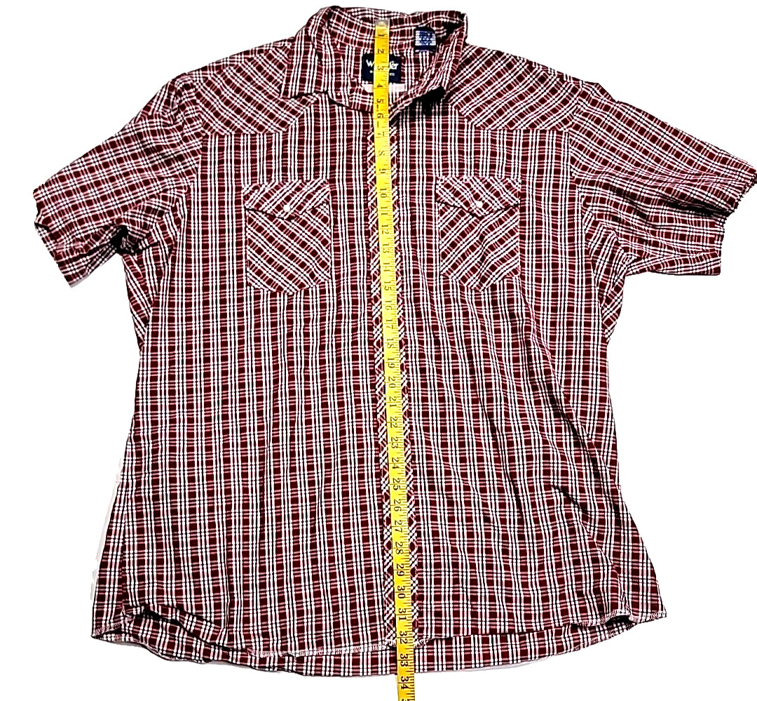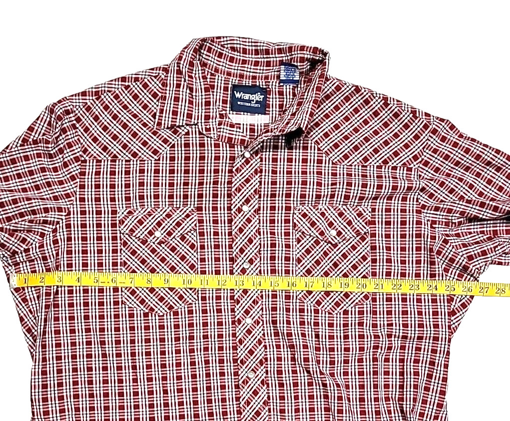 как выглядит Vintage Wrangler Pearl Snap Red Striped Western Cowboy Short-Sleeve Mens 2XL фото