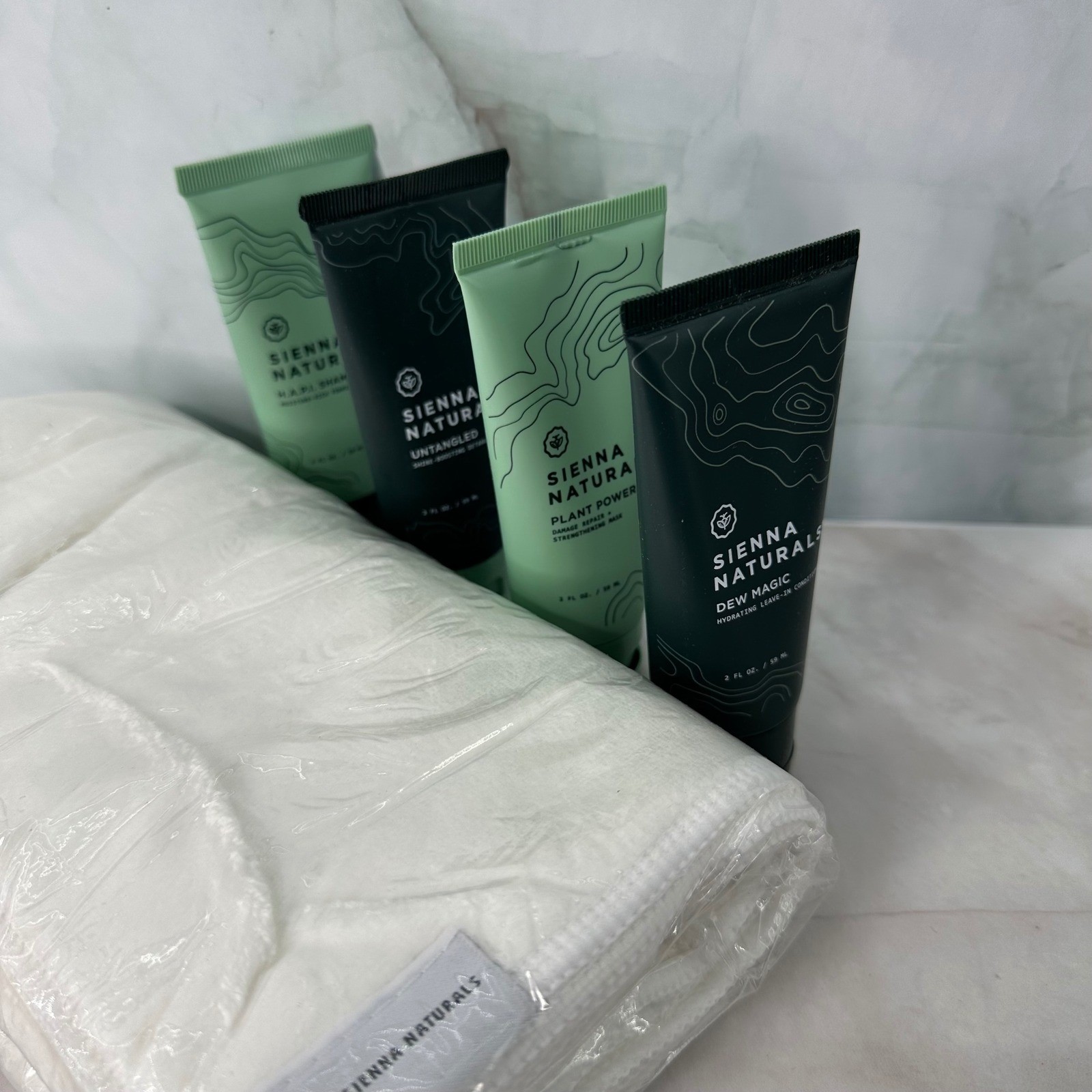 Sienna Naturals Travel Sz Hair care Sampler Shampoo Conditioner Mask Towel Vegan