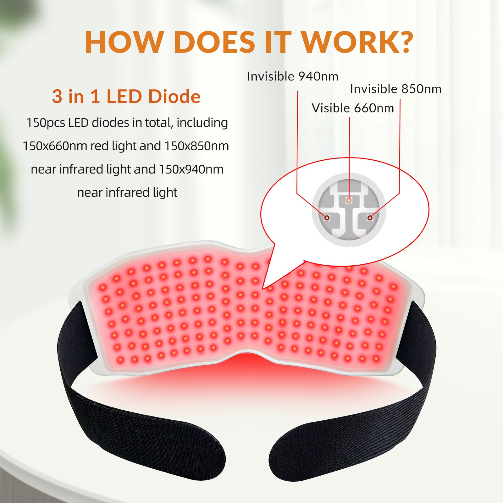 Wavelength: 660nm*150 + 850nm*150 + 940nm*150 pcs